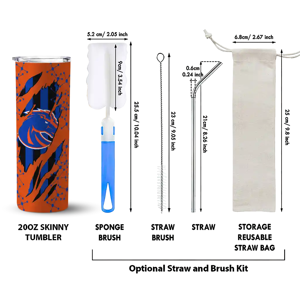 The Customized Boise State Broncos Star Pop Orange Black Skinny Tumbler tumbler is the perfect way to stay refreshed while showing off your pride for Boise State Broncos. With its double-wall insulation, your drinks stay at the right temperature for hours, whether you're enjoying a hot coffee or keeping your iced drink cold. What's inside? You’ll find 1 stainless steel tumbler, 1 clear lid, and 1 removable straw. It's the perfect blend of function and fan spirit! Ergonomically designed for comfort, made from durable stainless steel, and insulated to maintain your drink’s temperature, this tumbler is a must-have for any dedicated NCAA fan.