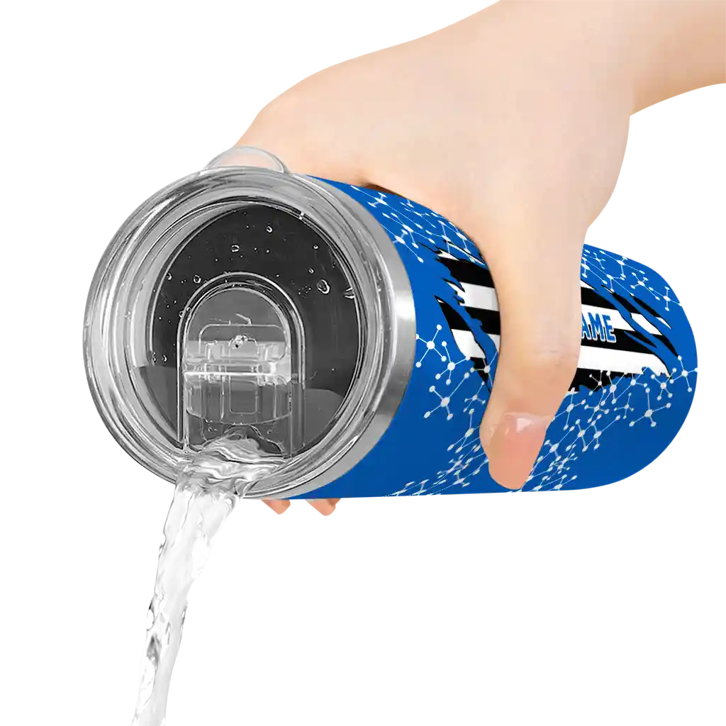 The Customized Buffalo Bulls Star Pop Royal Blue Black Skinny Tumbler tumbler is the perfect way to stay refreshed while showing off your pride for Buffalo Bulls. With its double-wall insulation, your drinks stay at the right temperature for hours, whether you're enjoying a hot coffee or keeping your iced drink cold. What's inside? You’ll find 1 stainless steel tumbler, 1 clear lid, and 1 removable straw. It's the perfect blend of function and fan spirit! Ergonomically designed for comfort, made from durable stainless steel, and insulated to maintain your drink’s temperature, this tumbler is a must-have for any dedicated NCAA fan.