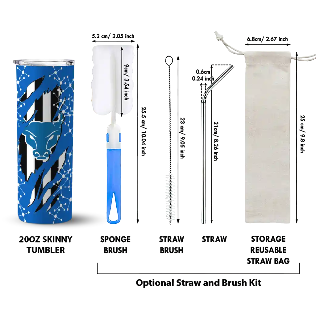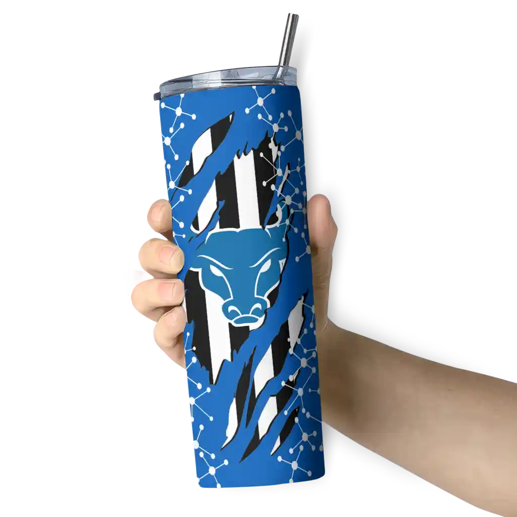 No question about it—the Custom Buffalo Bulls Gradient Dots Royal Blue Curved Tumbler is the ultimate way to stay refreshed while rocking your Buffalo Bulls pride. From the stadium to your tailgate, or just chilling at home, this sleek tumbler makes sure you stay hydrated in style. What’s in the box? A stainless steel tumbler, clear lid, and removable straw—all the essentials for keeping your favorite drinks on point!