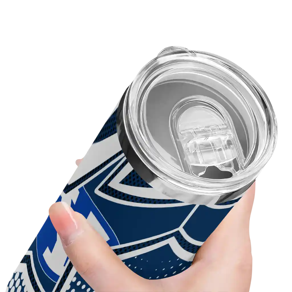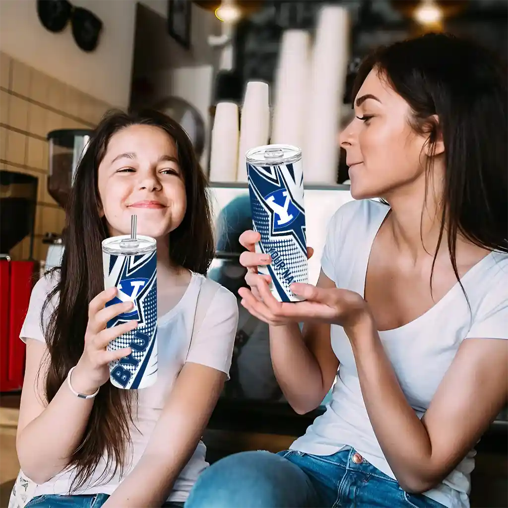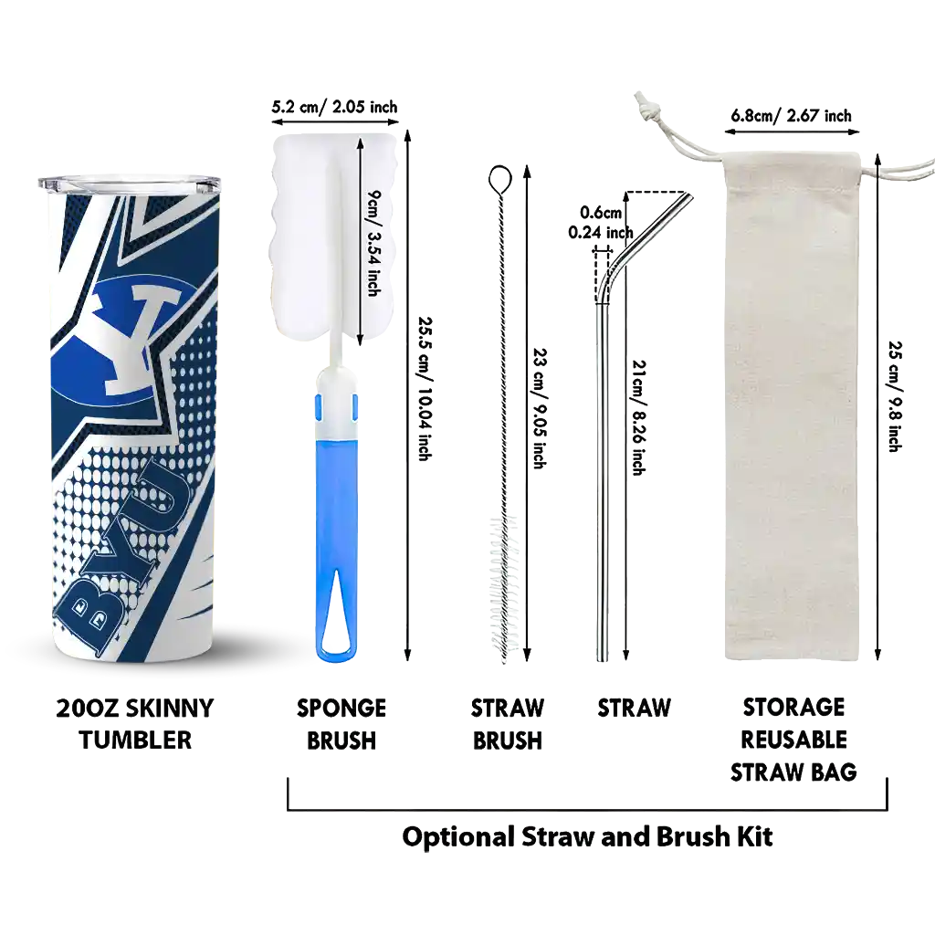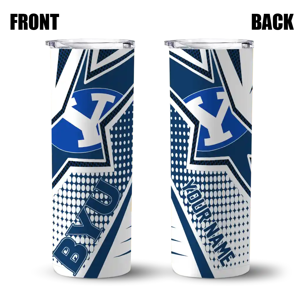 The Customized BYU Cougars Web Stripes Blue White Skinny Tumbler tumbler is the perfect way to stay refreshed while showing off your pride for BYU Cougars. With its double-wall insulation, your drinks stay at the right temperature for hours, whether you're enjoying a hot coffee or keeping your iced drink cold. What's inside? You’ll find 1 stainless steel tumbler, 1 clear lid, and 1 removable straw. It's the perfect blend of function and fan spirit! Ergonomically designed for comfort, made from durable stainless steel, and insulated to maintain your drink’s temperature, this tumbler is a must-have for any dedicated NCAA fan.