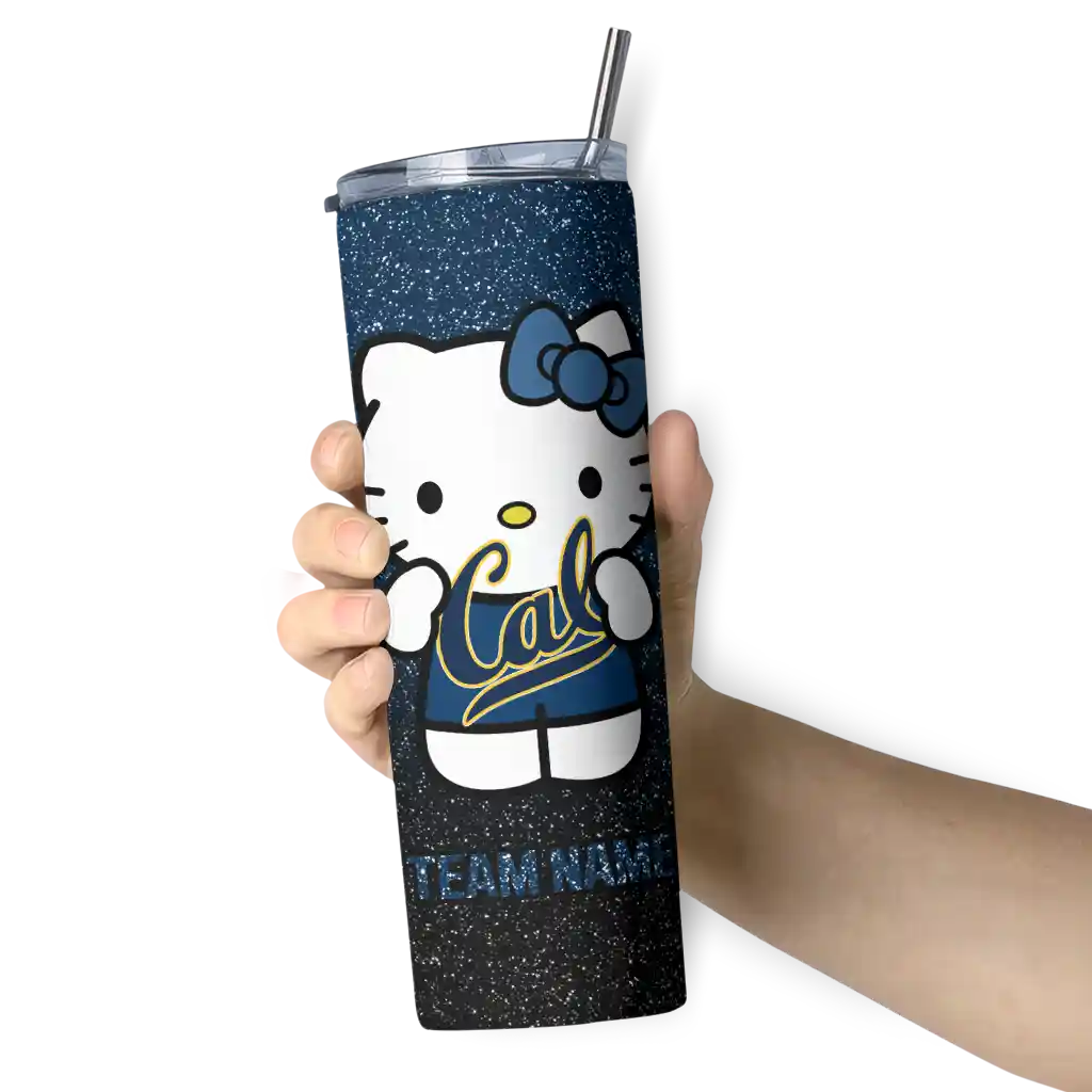 Customized California Golden Bears Hello Kitty Blue Black Skinny Tumbler
