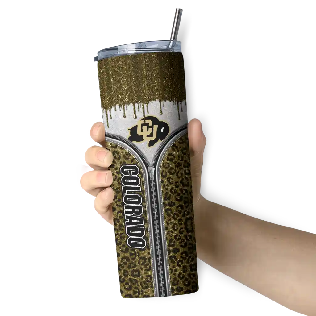 No question about it—the Customized Colorado Buffaloes Leopard Zipper Gold Curved Tumbler is the ultimate way to stay refreshed while rocking your Colorado Buffaloes pride. From the stadium to your tailgate, or just chilling at home, this sleek tumbler makes sure you stay hydrated in style. What’s in the box? A stainless steel tumbler, clear lid, and removable straw—all the essentials for keeping your favorite drinks on point!