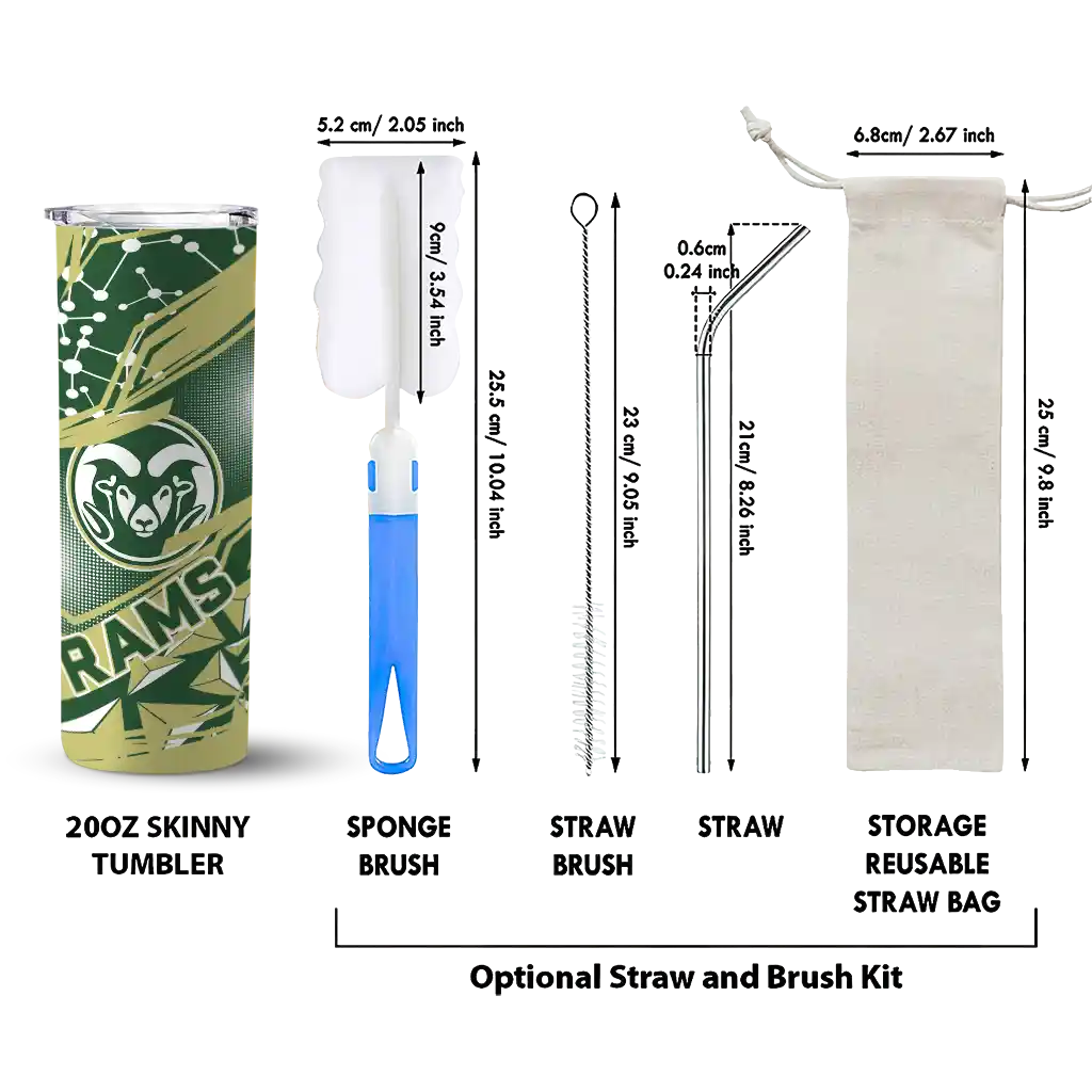 The Customized Colorado State Rams Helmet Clash Green Skinny Tumbler tumbler is the perfect way to stay refreshed while showing off your pride for Colorado State Rams. With its double-wall insulation, your drinks stay at the right temperature for hours, whether you're enjoying a hot coffee or keeping your iced drink cold. What's inside? You’ll find 1 stainless steel tumbler, 1 clear lid, and 1 removable straw. It's the perfect blend of function and fan spirit! Ergonomically designed for comfort, made from durable stainless steel, and insulated to maintain your drink’s temperature, this tumbler is a must-have for any dedicated NCAA fan.