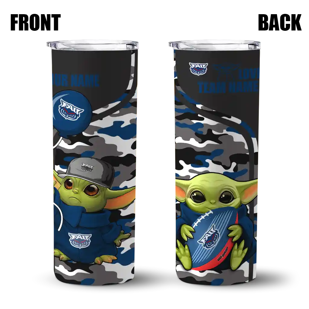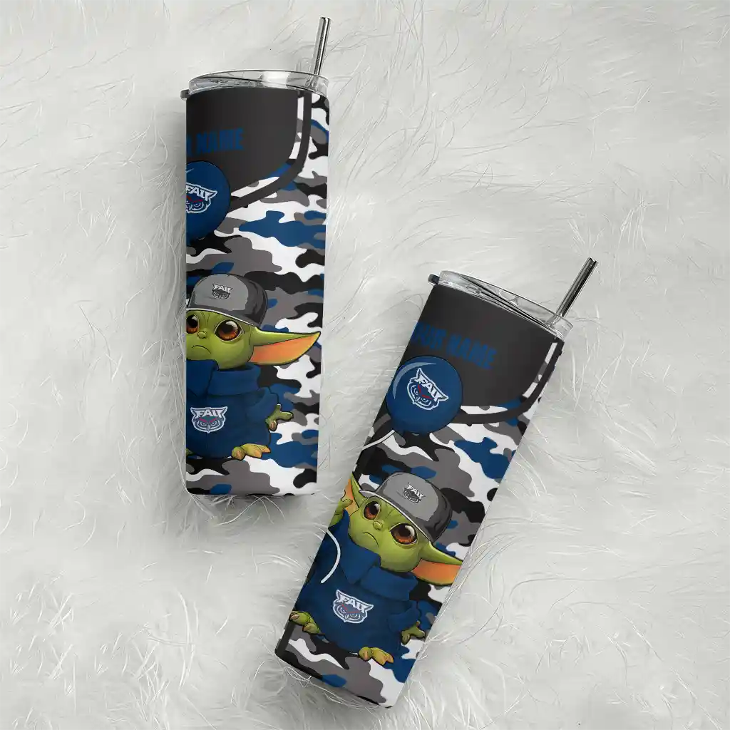 Customized Florida Atlantic Owls Yoda Camo Blue Black Skinny Tumbler