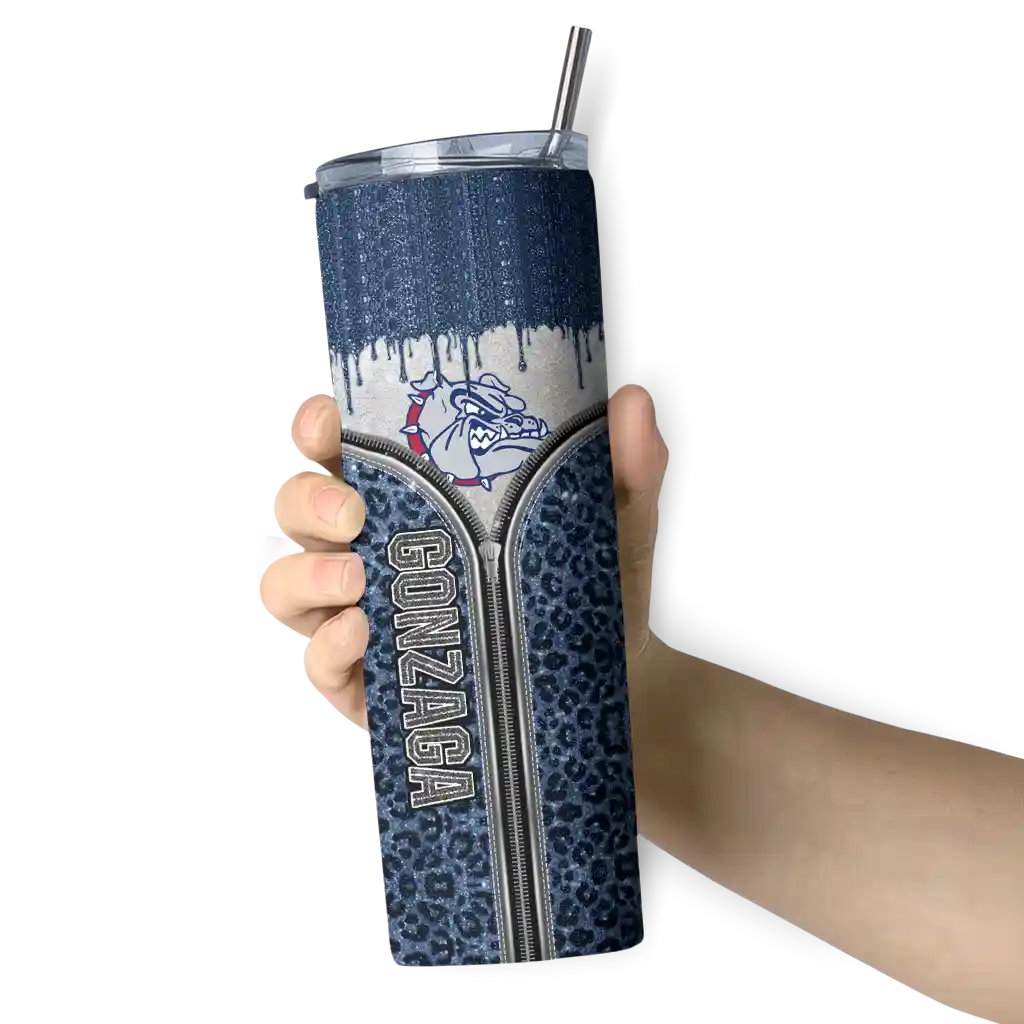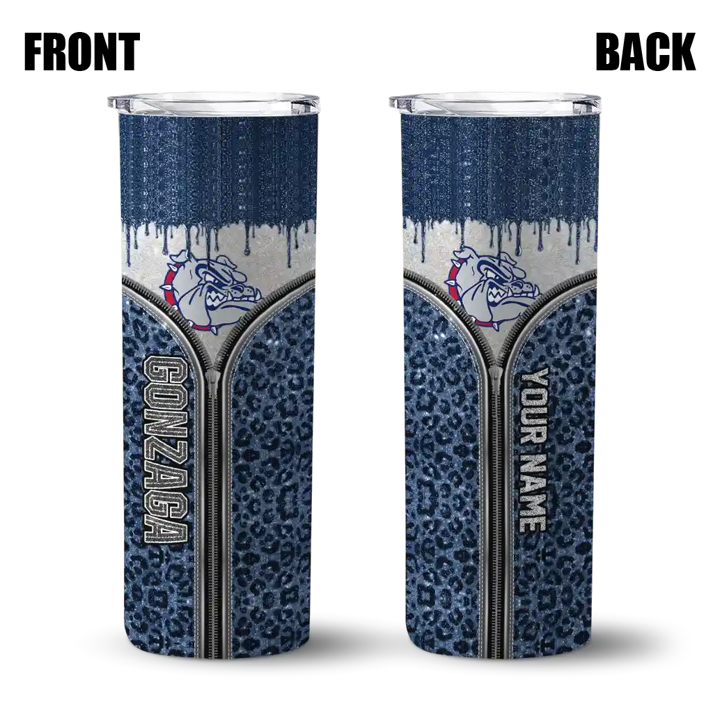 The Personalized Gonzaga Bulldogs Zipper Leopard Blue Skinny Tumbler tumbler is the perfect way to stay refreshed while showing off your pride for Gonzaga Bulldogs. With its double-wall insulation, your drinks stay at the right temperature for hours, whether you're enjoying a hot coffee or keeping your iced drink cold. What's inside? You’ll find 1 stainless steel tumbler, 1 clear lid, and 1 removable straw. It's the perfect blend of function and fan spirit! Ergonomically designed for comfort, made from durable stainless steel, and insulated to maintain your drink’s temperature, this tumbler is a must-have for any dedicated NCAA fan.