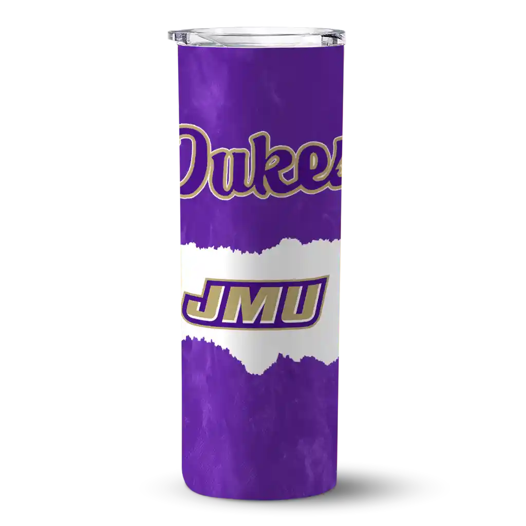 Introducing the James Madison Dukes Tumblers from NCAA Fan Pro —where fan pride meets practical design. This slim tumbler is created for NCAA fans who want their drinks at the perfect temperature while displaying their school pride. The double-wall insulation ensures your hot beverages stay warm and your cold drinks stay chilled for hours, so you can enjoy your drinks at their best, whether you're at a game, tailgate, or on the go.