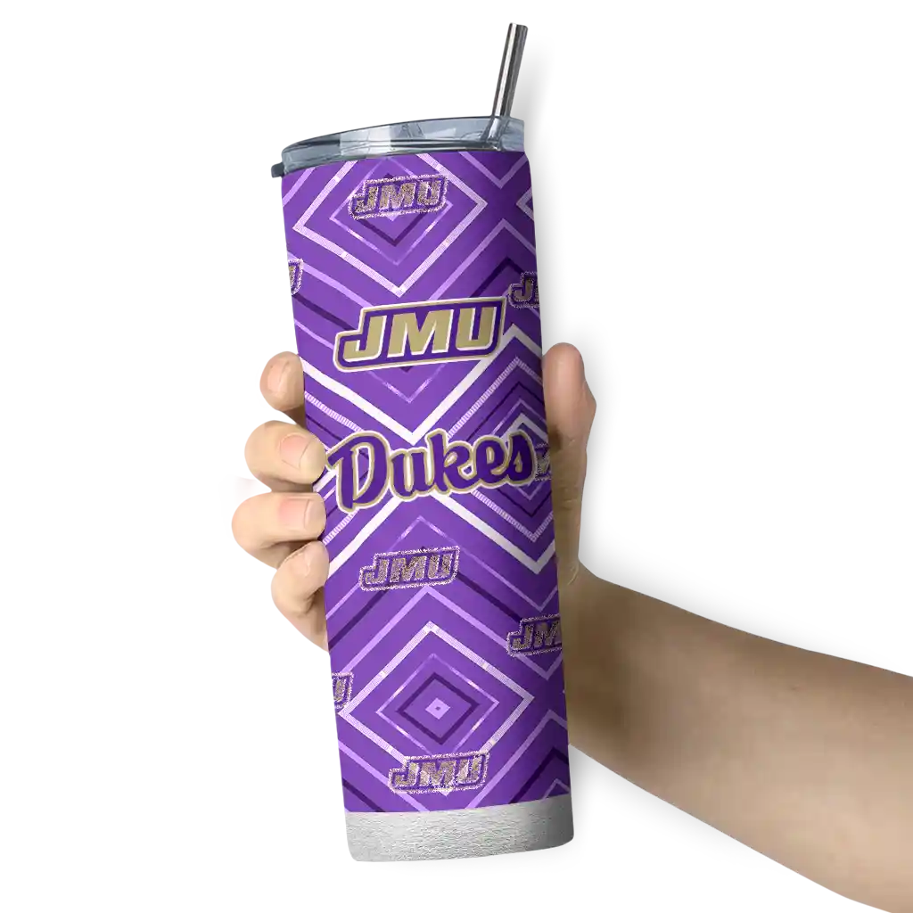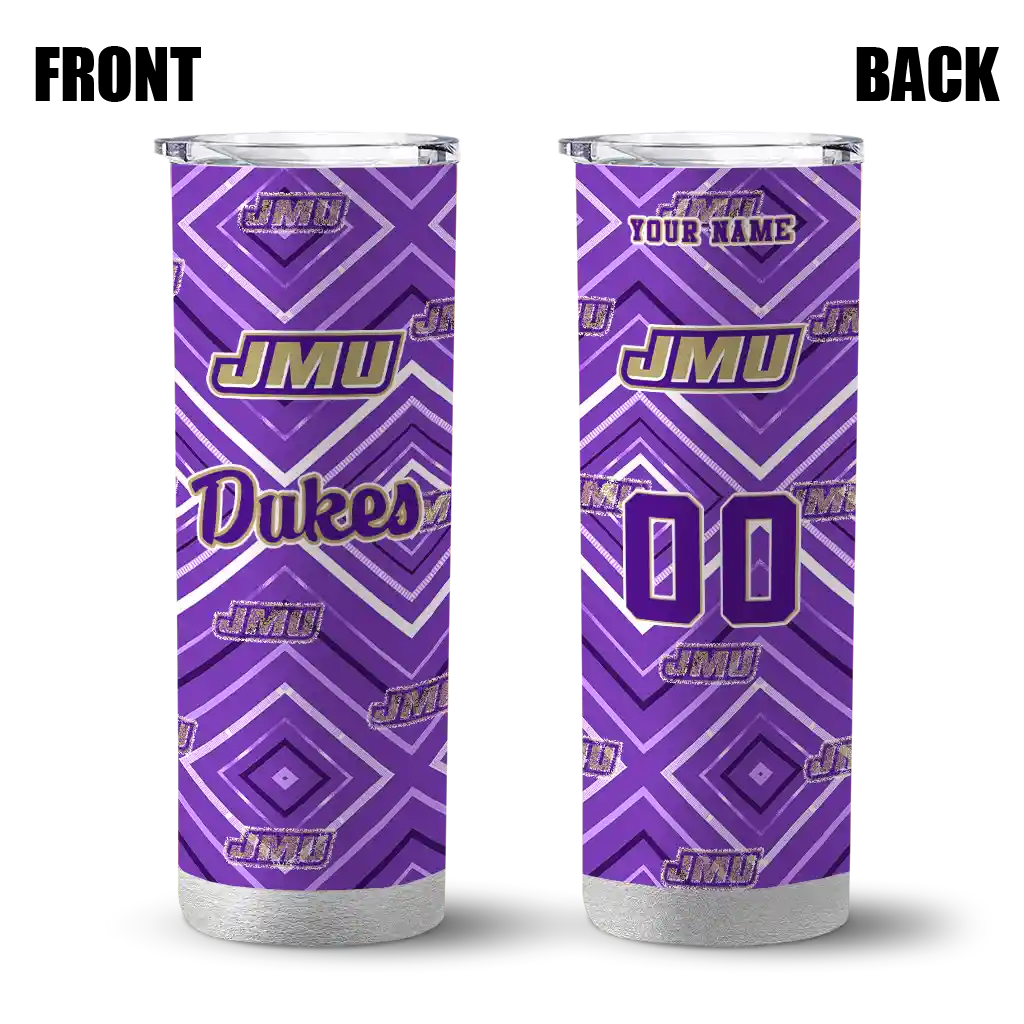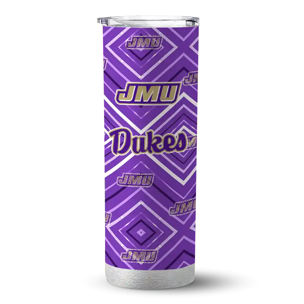 No question about it—the Customized James Madison Dukes Bold Diamonds Purple Curved Tumbler is the ultimate way to stay refreshed while rocking your James Madison Dukes pride. From the stadium to your tailgate, or just chilling at home, this sleek tumbler makes sure you stay hydrated in style. What’s in the box? A stainless steel tumbler, clear lid, and removable straw—all the essentials for keeping your favorite drinks on point!