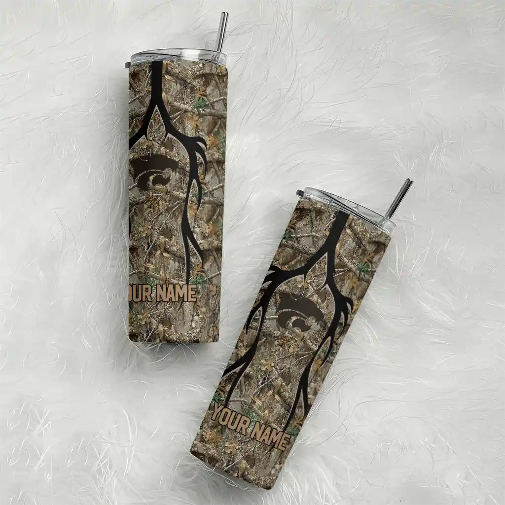 Customized Kansas State Wildcats Antler Flow Camo Skinny Tumbler