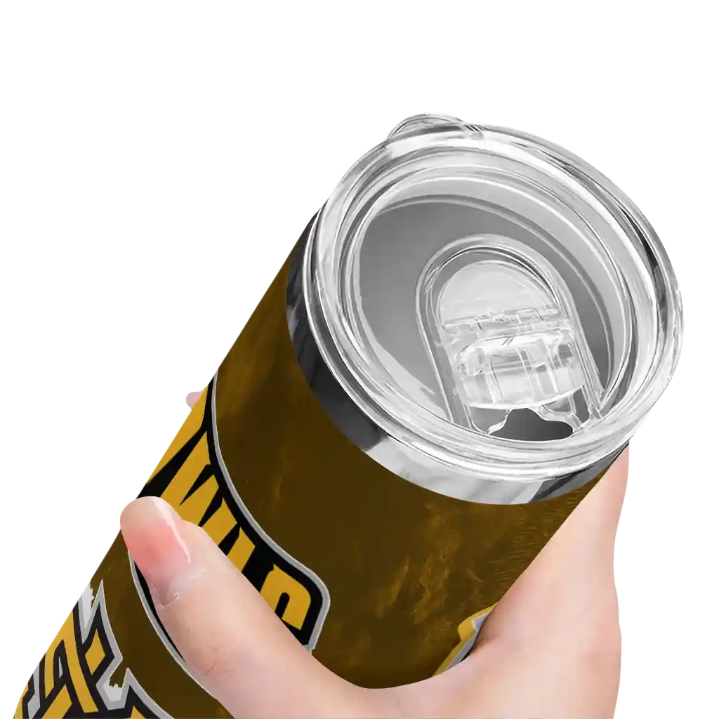 No question about it—the Custom Kennesaw State Owls Bullseye Drips Gold Curved Tumbler is the ultimate way to stay refreshed while rocking your Kennesaw State Owls pride. From the stadium to your tailgate, or just chilling at home, this sleek tumbler makes sure you stay hydrated in style. What’s in the box? A stainless steel tumbler, clear lid, and removable straw—all the essentials for keeping your favorite drinks on point!