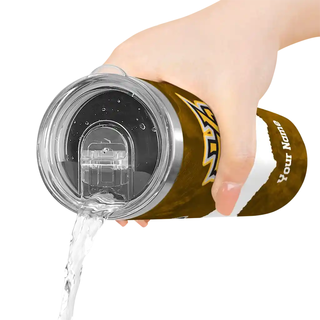 The Customized Kennesaw State Owls Torn Band Gold White Skinny Tumbler tumbler is the perfect way to stay refreshed while showing off your pride for Kennesaw State Owls. With its double-wall insulation, your drinks stay at the right temperature for hours, whether you're enjoying a hot coffee or keeping your iced drink cold. What's inside? You’ll find 1 stainless steel tumbler, 1 clear lid, and 1 removable straw. It's the perfect blend of function and fan spirit! Ergonomically designed for comfort, made from durable stainless steel, and insulated to maintain your drink’s temperature, this tumbler is a must-have for any dedicated NCAA fan.