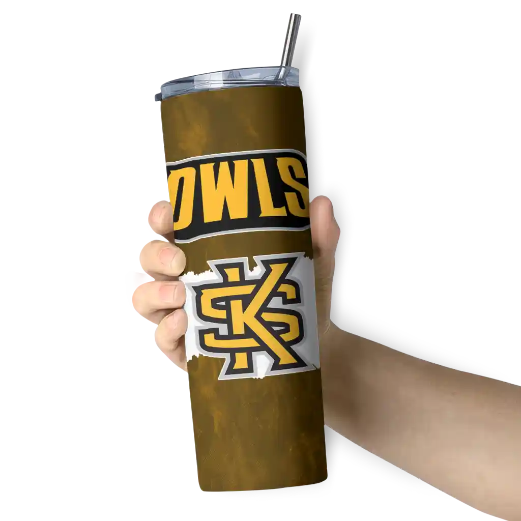 Made from premium stainless steel, this tumbler is built to last. The bold Kennesaw State Owls logo proudly represents your team, while the ergonomic design fits comfortably in your hand for easy carrying. Whether you're cheering in the stands, catching up with friends, or just out and about, this tumbler is the perfect fan accessory, combining style and function to keep you hydrated in true NCAA spirit.