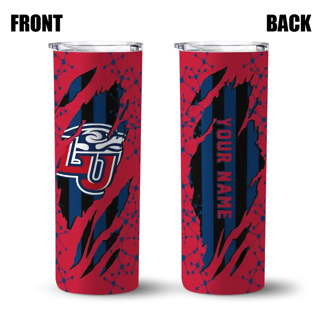 No question about it—the Personalized Liberty Flames Geometric Prism Red Curved Tumbler is the ultimate way to stay refreshed while rocking your Liberty Flames pride. From the stadium to your tailgate, or just chilling at home, this sleek tumbler makes sure you stay hydrated in style. What’s in the box? A stainless steel tumbler, clear lid, and removable straw—all the essentials for keeping your favorite drinks on point!