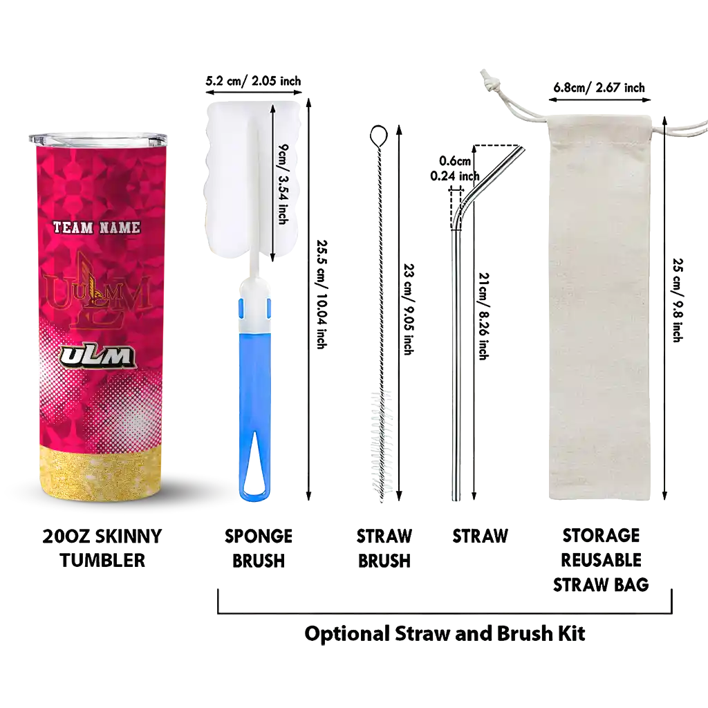 The Customized Louisiana-Monroe Warhawks Chevron Patch Red Skinny Tumbler tumbler is the perfect way to stay refreshed while showing off your pride for Louisiana-Monroe Warhawks. With its double-wall insulation, your drinks stay at the right temperature for hours, whether you're enjoying a hot coffee or keeping your iced drink cold. What's inside? You’ll find 1 stainless steel tumbler, 1 clear lid, and 1 removable straw. It's the perfect blend of function and fan spirit! Ergonomically designed for comfort, made from durable stainless steel, and insulated to maintain your drink’s temperature, this tumbler is a must-have for any dedicated NCAA fan.