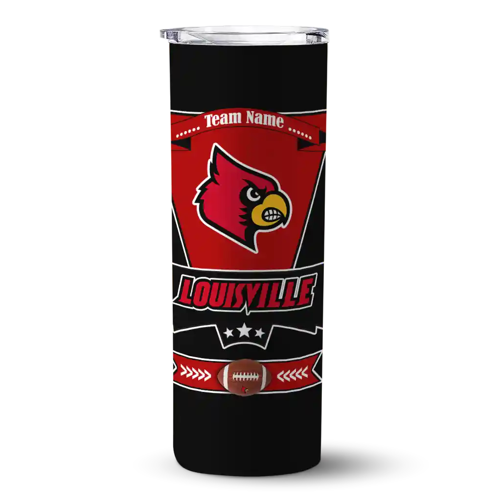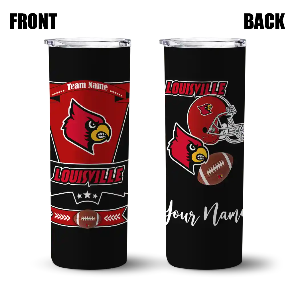 The Customized Louisville Cardinals Helmet Belt Red Black Skinny Tumbler tumbler is the perfect way to stay refreshed while showing off your pride for Louisville Cardinals. With its double-wall insulation, your drinks stay at the right temperature for hours, whether you're enjoying a hot coffee or keeping your iced drink cold. What's inside? You’ll find 1 stainless steel tumbler, 1 clear lid, and 1 removable straw. It's the perfect blend of function and fan spirit! Ergonomically designed for comfort, made from durable stainless steel, and insulated to maintain your drink’s temperature, this tumbler is a must-have for any dedicated NCAA fan.