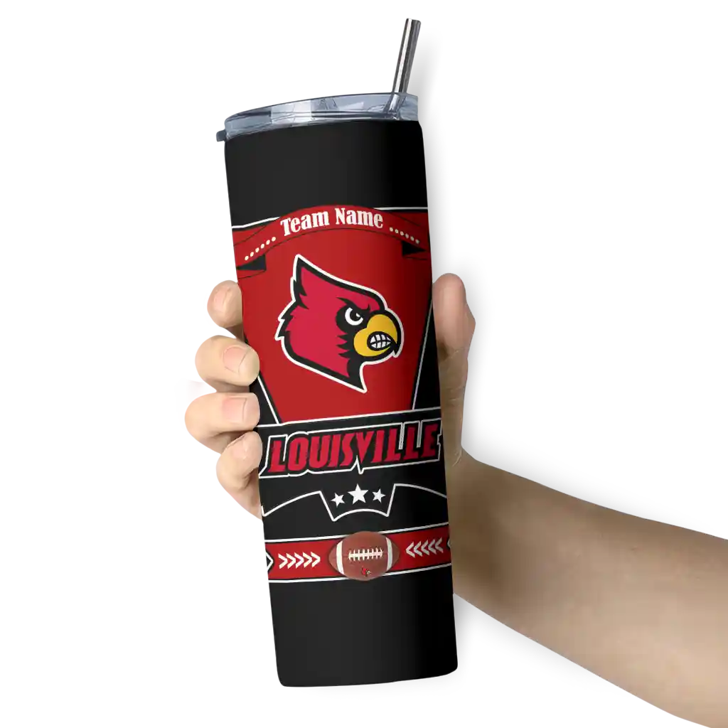 No question about it—the Customized Louisville Cardinals Chevron Angle Red Curved Tumbler is the ultimate way to stay refreshed while rocking your Louisville Cardinals pride. From the stadium to your tailgate, or just chilling at home, this sleek tumbler makes sure you stay hydrated in style. What’s in the box? A stainless steel tumbler, clear lid, and removable straw—all the essentials for keeping your favorite drinks on point!