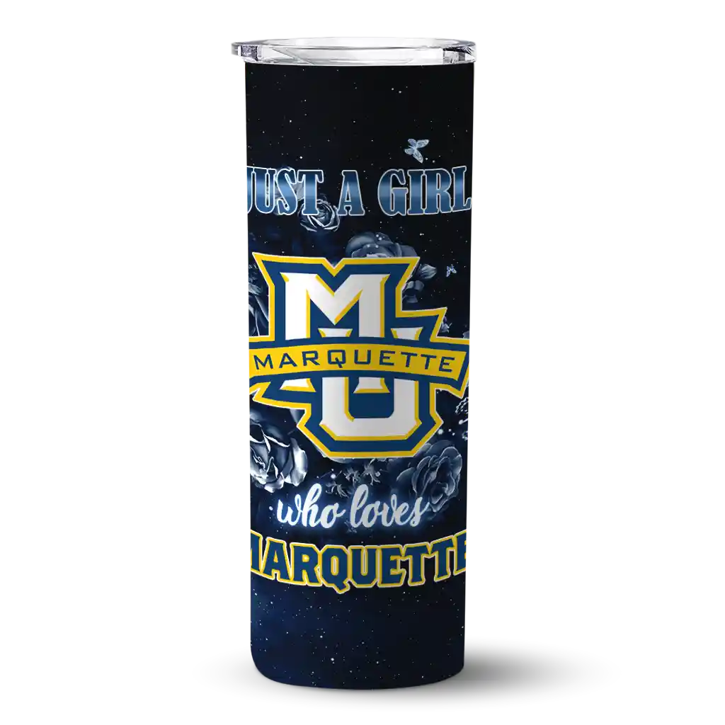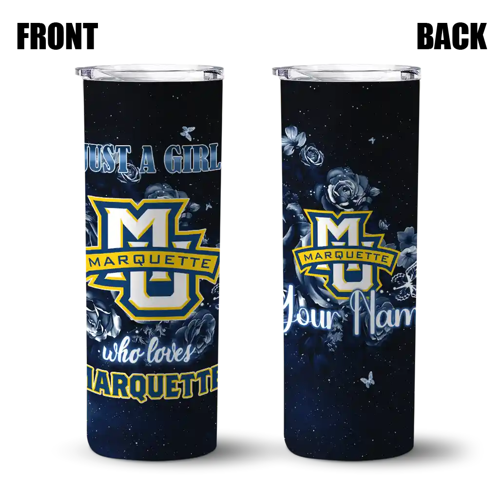Customized Marquette Golden Eagles Rose Romance Blue Black Skinny Tumbler
