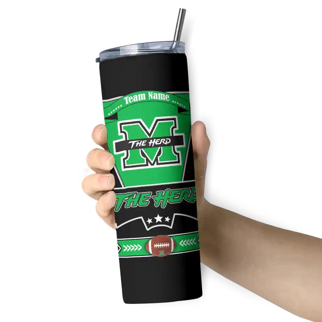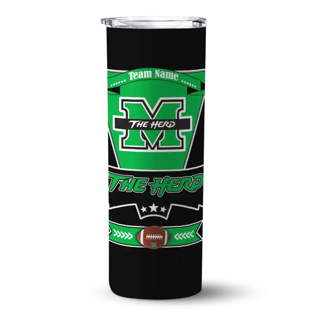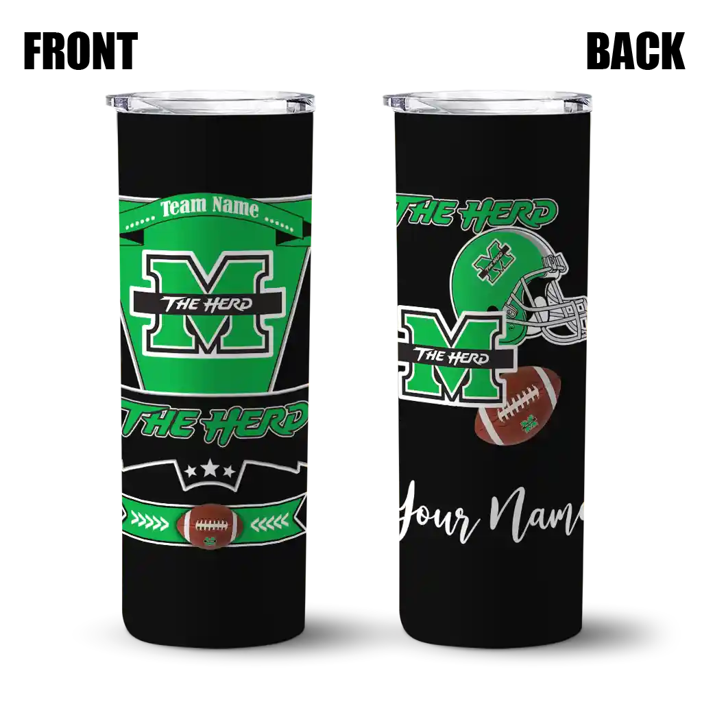 Customized Marshall Thundering Herd Helmet Belt Green Black Skinny Tumbler