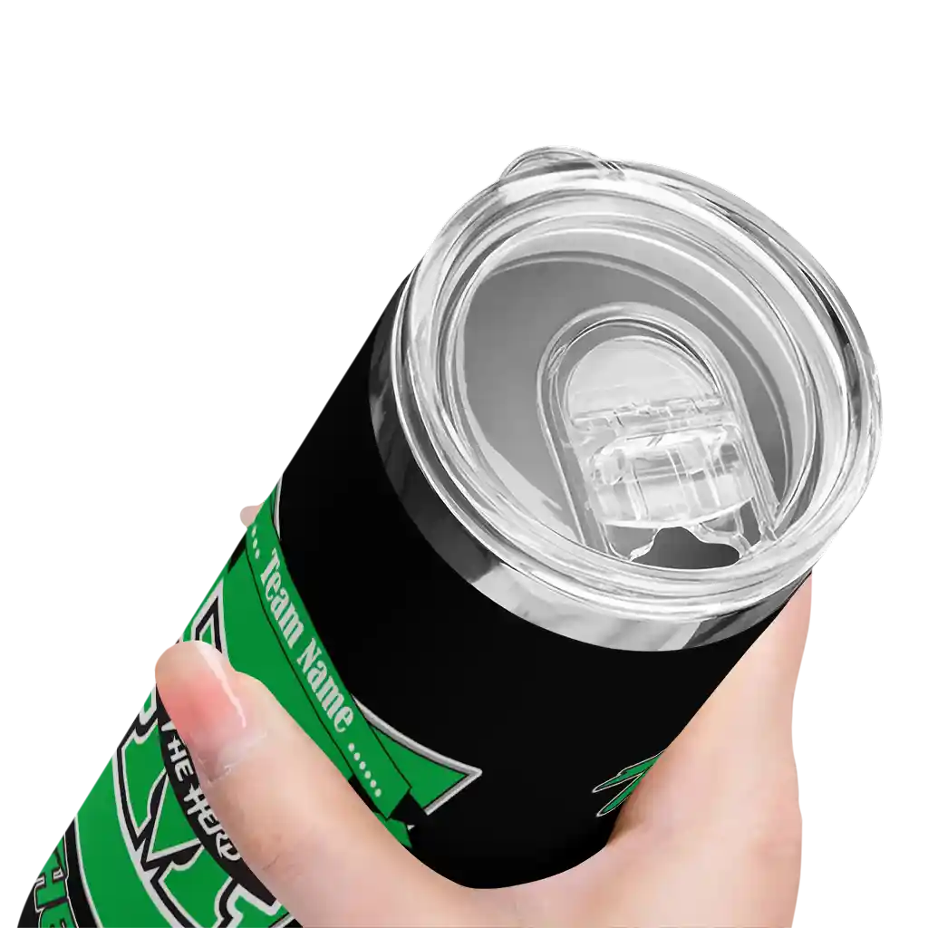 No question about it—the Custom Marshall Thundering Herd Claw Cut Green Black Curved Tumbler is the ultimate way to stay refreshed while rocking your Marshall Thundering Herd pride. From the stadium to your tailgate, or just chilling at home, this sleek tumbler makes sure you stay hydrated in style. What’s in the box? A stainless steel tumbler, clear lid, and removable straw—all the essentials for keeping your favorite drinks on point!