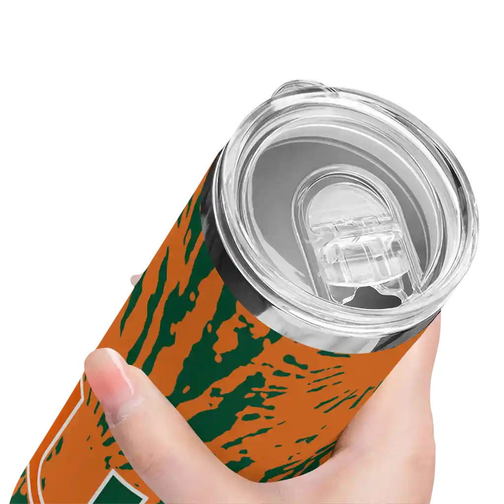 Introducing the Miami Hurricanes Tumblers from NCAA Fan Pro —where fan pride meets practical design. This slim tumbler is created for NCAA fans who want their drinks at the perfect temperature while displaying their school pride. The double-wall insulation ensures your hot beverages stay warm and your cold drinks stay chilled for hours, so you can enjoy your drinks at their best, whether you're at a game, tailgate, or on the go.