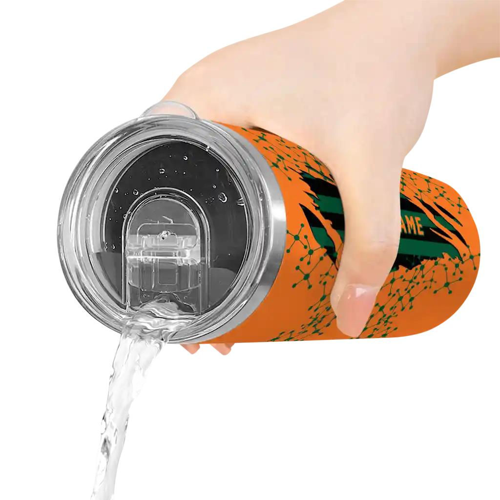 The Customized Miami Hurricanes Star Pop Orange Black Skinny Tumbler tumbler is the perfect way to stay refreshed while showing off your pride for Miami Hurricanes. With its double-wall insulation, your drinks stay at the right temperature for hours, whether you're enjoying a hot coffee or keeping your iced drink cold. What's inside? You’ll find 1 stainless steel tumbler, 1 clear lid, and 1 removable straw. It's the perfect blend of function and fan spirit! Ergonomically designed for comfort, made from durable stainless steel, and insulated to maintain your drink’s temperature, this tumbler is a must-have for any dedicated NCAA fan.