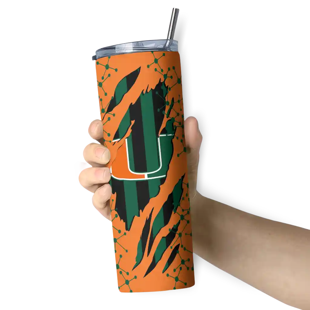 Introducing the Miami Hurricanes Tumblers from NCAA Fan Pro —where fan pride meets practical design. This slim tumbler is created for NCAA fans who want their drinks at the perfect temperature while displaying their school pride. The double-wall insulation ensures your hot beverages stay warm and your cold drinks stay chilled for hours, so you can enjoy your drinks at their best, whether you're at a game, tailgate, or on the go.