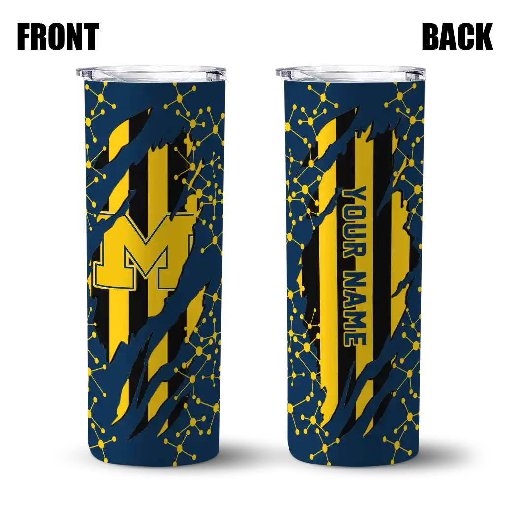 Customized Michigan Wolverines Star Pop Blue Black Skinny Tumbler