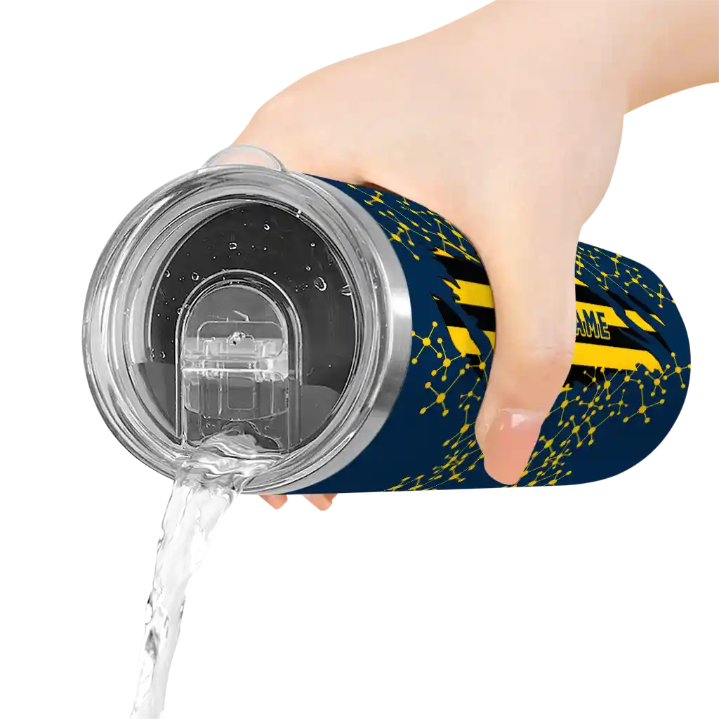The Customized Michigan Wolverines Star Pop Blue Black Skinny Tumbler tumbler is the perfect way to stay refreshed while showing off your pride for Michigan Wolverines. With its double-wall insulation, your drinks stay at the right temperature for hours, whether you're enjoying a hot coffee or keeping your iced drink cold. What's inside? You’ll find 1 stainless steel tumbler, 1 clear lid, and 1 removable straw. It's the perfect blend of function and fan spirit! Ergonomically designed for comfort, made from durable stainless steel, and insulated to maintain your drink’s temperature, this tumbler is a must-have for any dedicated NCAA fan.