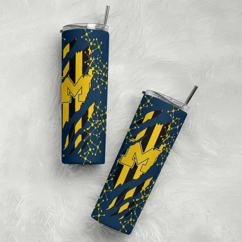 No question about it—the Custom Michigan Wolverines Claw Cut Blue Black Curved Tumbler is the ultimate way to stay refreshed while rocking your Michigan Wolverines pride. From the stadium to your tailgate, or just chilling at home, this sleek tumbler makes sure you stay hydrated in style. What’s in the box? A stainless steel tumbler, clear lid, and removable straw—all the essentials for keeping your favorite drinks on point!