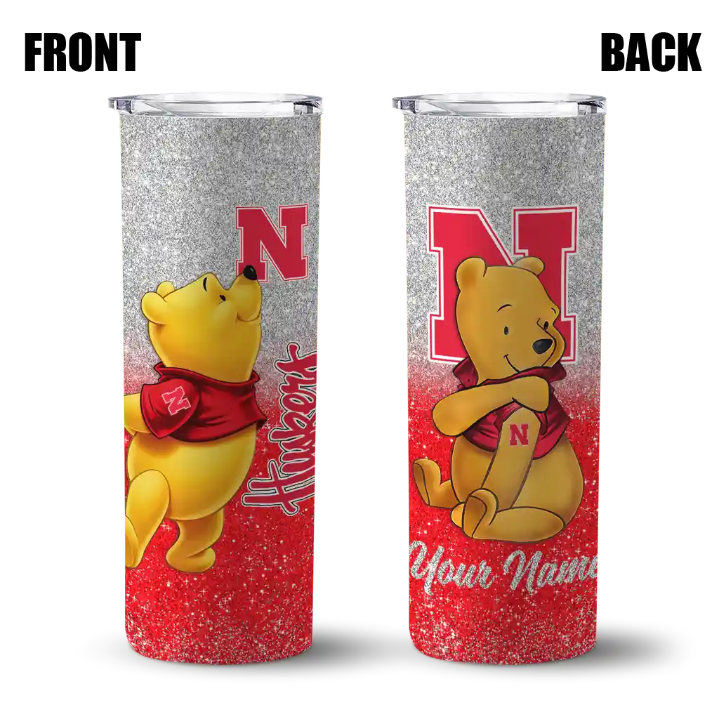 Customized Nebraska Cornhuskers Winnie the Pooh Red Gray Skinny Tumbler