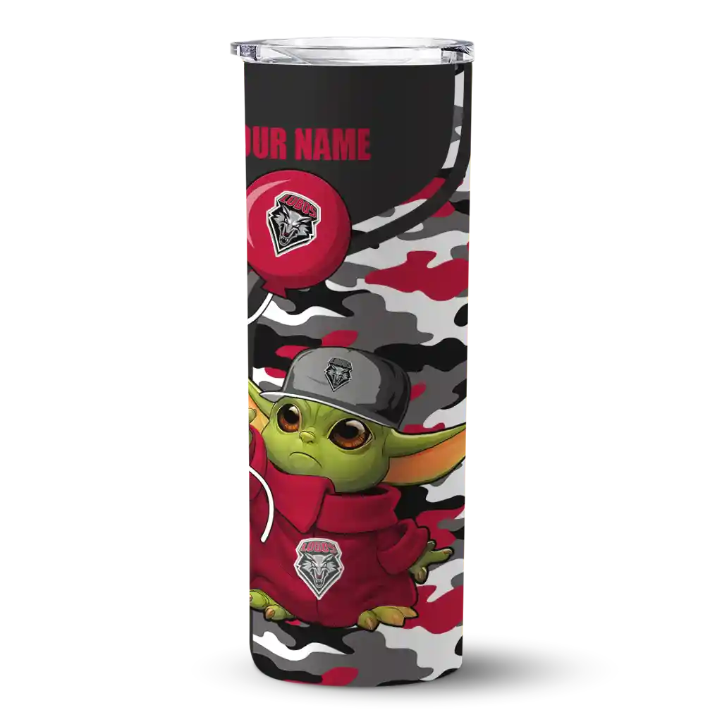 Customized New Mexico Lobos Yoda Camo Red Black Skinny Tumbler
