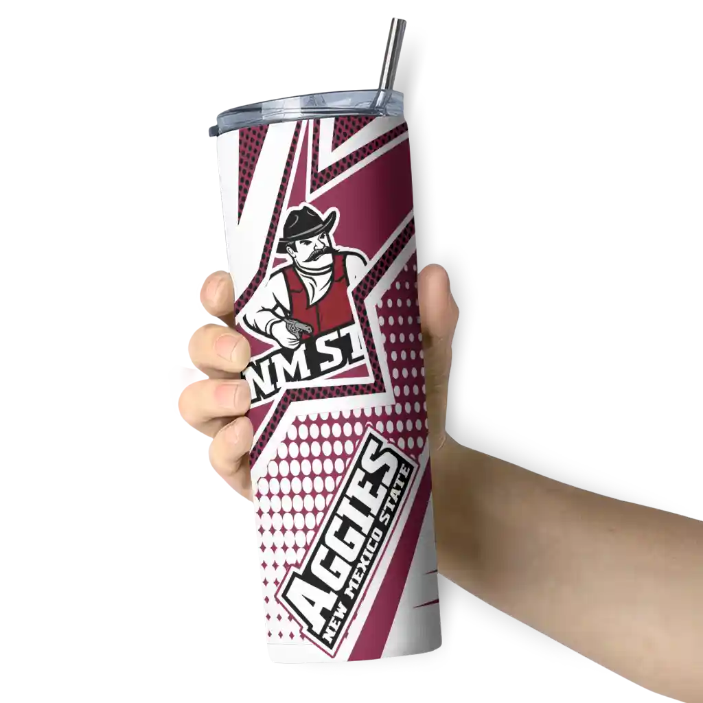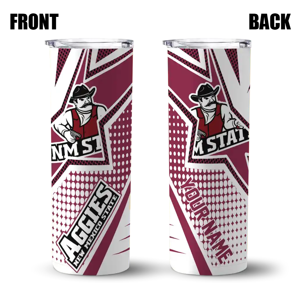 Made from premium stainless steel, this tumbler is built to last. The bold New Mexico State Aggies logo proudly represents your team, while the ergonomic design fits comfortably in your hand for easy carrying. Whether you're cheering in the stands, catching up with friends, or just out and about, this tumbler is the perfect fan accessory, combining style and function to keep you hydrated in true NCAA spirit.