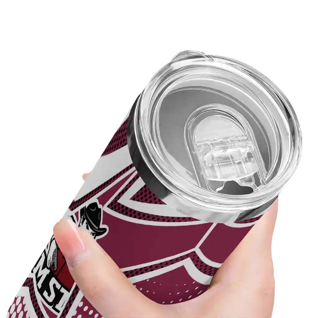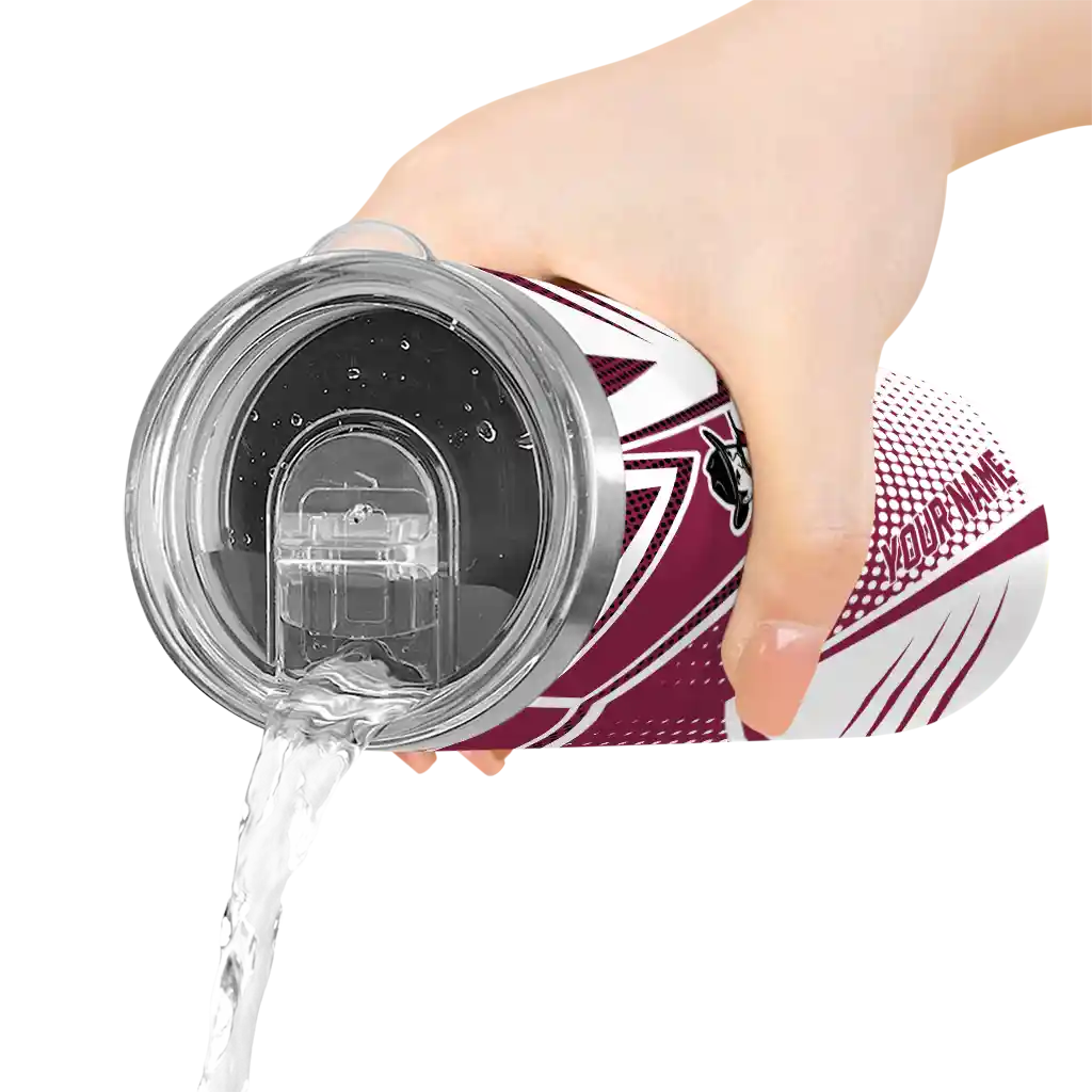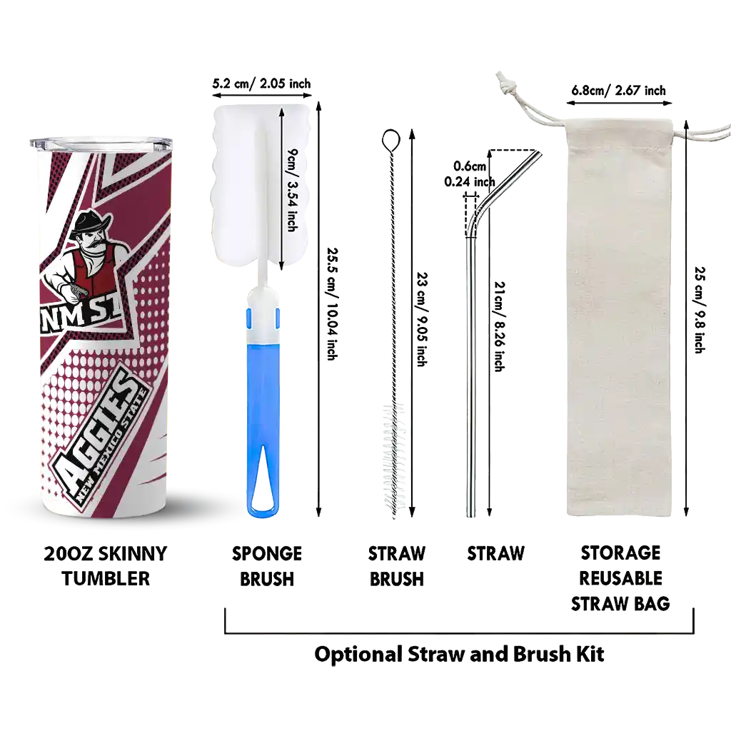 The Customized New Mexico State Aggies Web Stripes Crimson White Skinny Tumbler tumbler is the perfect way to stay refreshed while showing off your pride for New Mexico State Aggies. With its double-wall insulation, your drinks stay at the right temperature for hours, whether you're enjoying a hot coffee or keeping your iced drink cold. What's inside? You’ll find 1 stainless steel tumbler, 1 clear lid, and 1 removable straw. It's the perfect blend of function and fan spirit! Ergonomically designed for comfort, made from durable stainless steel, and insulated to maintain your drink’s temperature, this tumbler is a must-have for any dedicated NCAA fan.