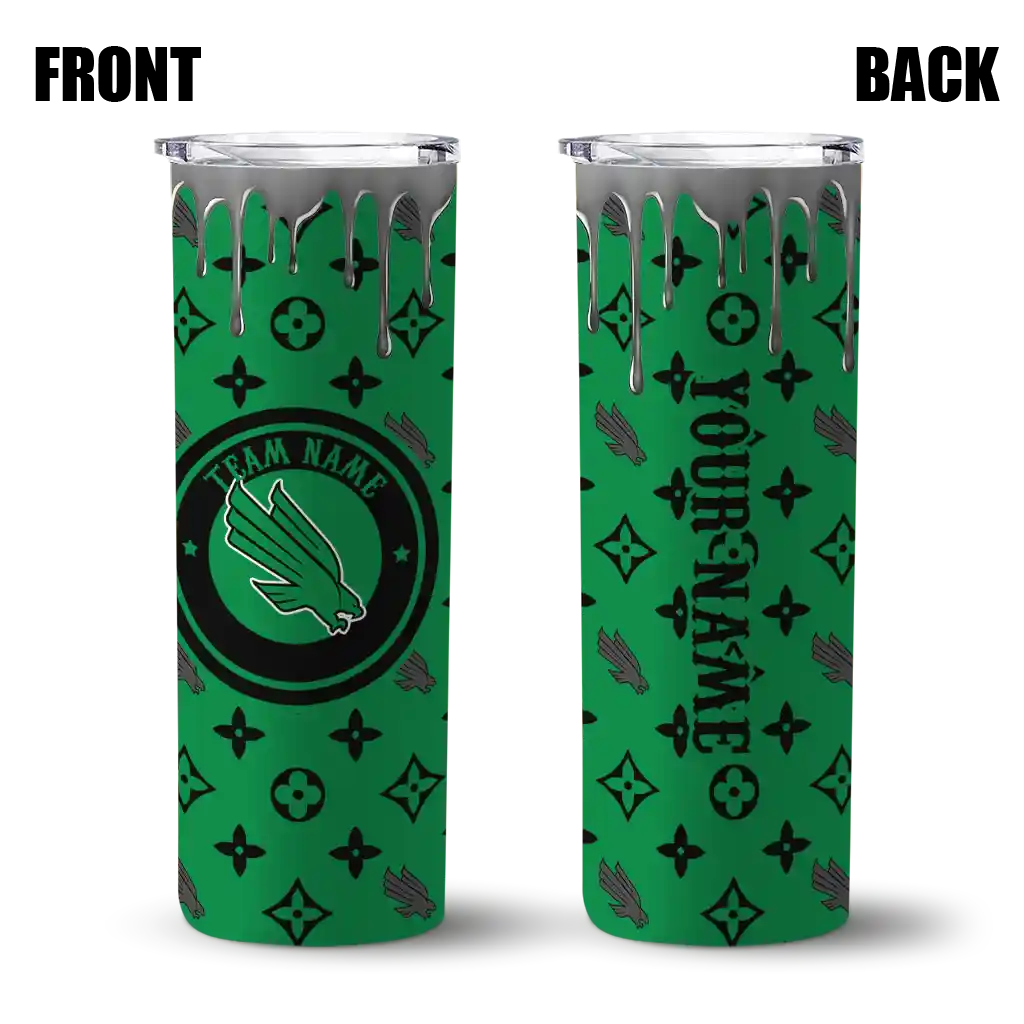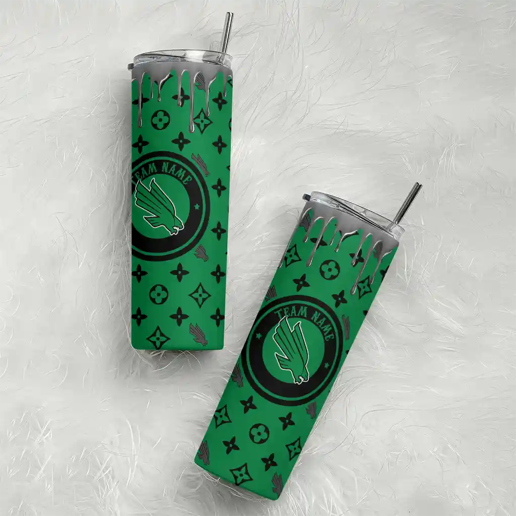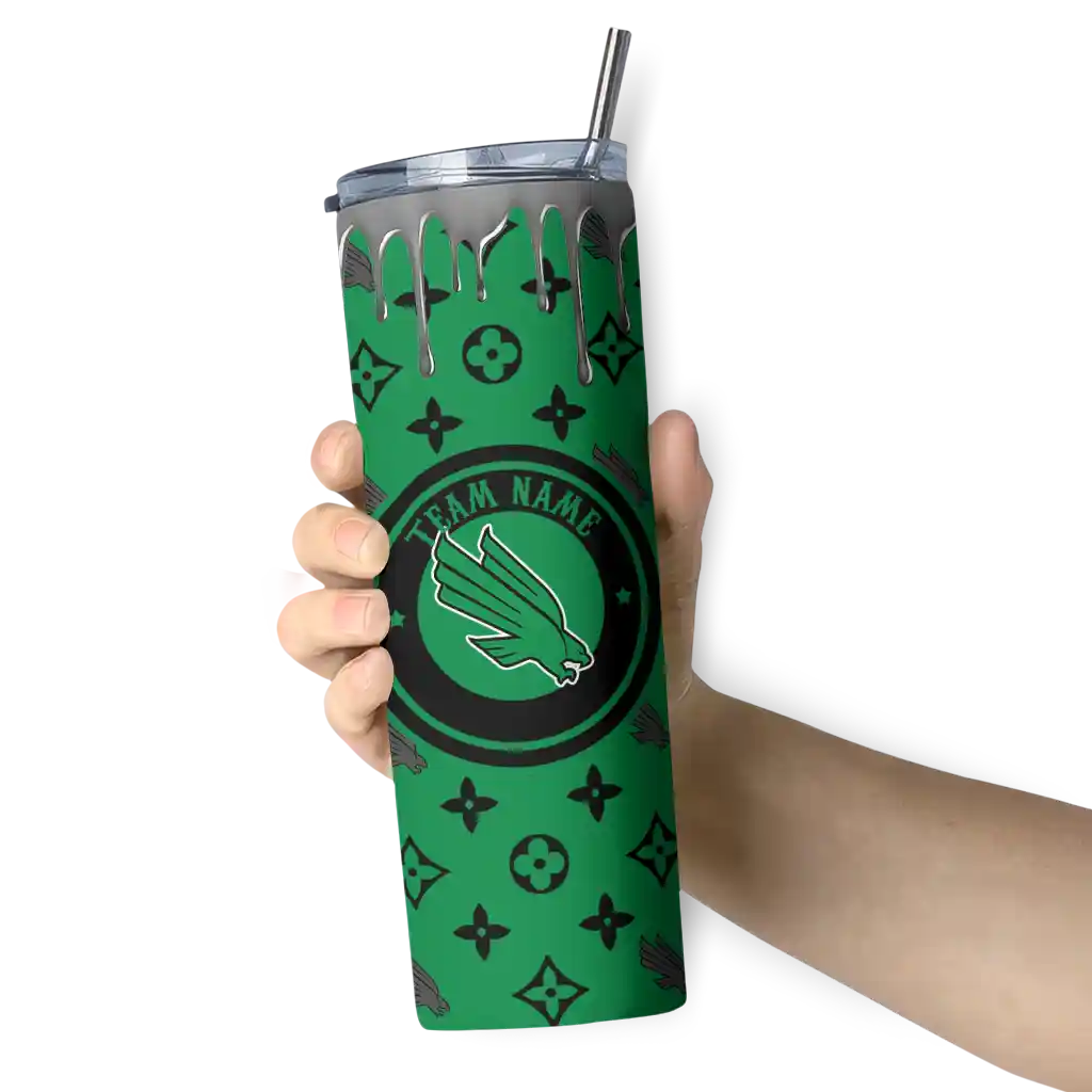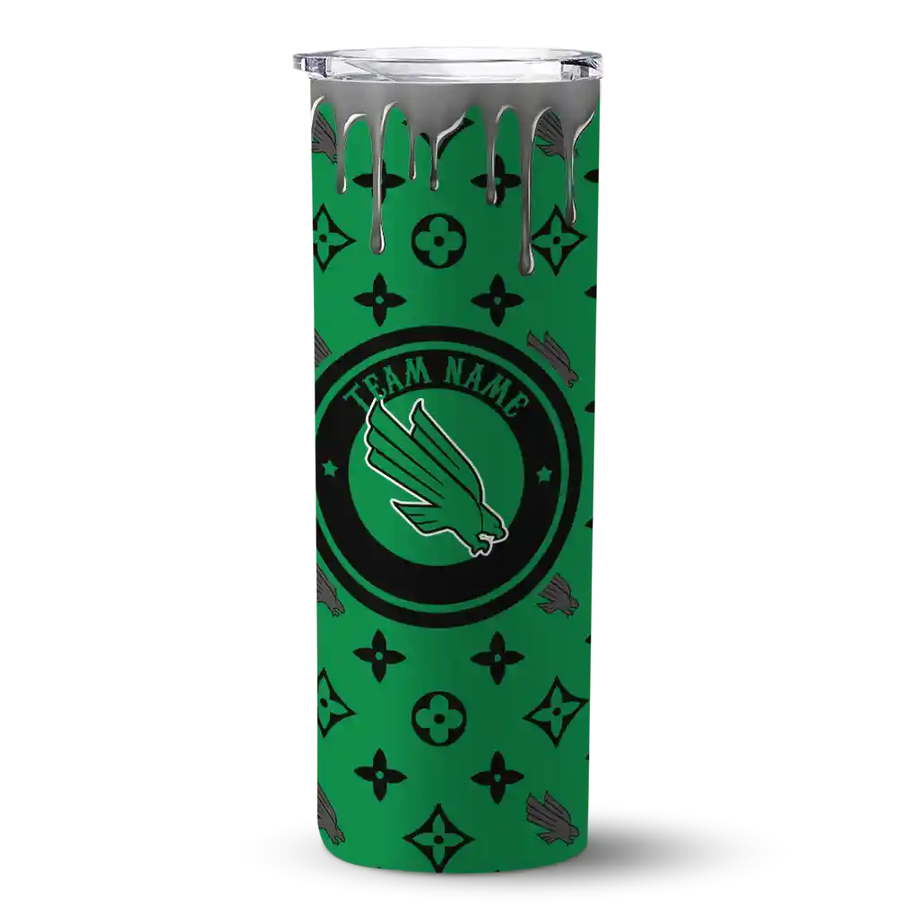 No question about it—the Customized North Texas Mean Green Chevron Angle Green Curved Tumbler is the ultimate way to stay refreshed while rocking your North Texas Mean Green pride. From the stadium to your tailgate, or just chilling at home, this sleek tumbler makes sure you stay hydrated in style. What’s in the box? A stainless steel tumbler, clear lid, and removable straw—all the essentials for keeping your favorite drinks on point!