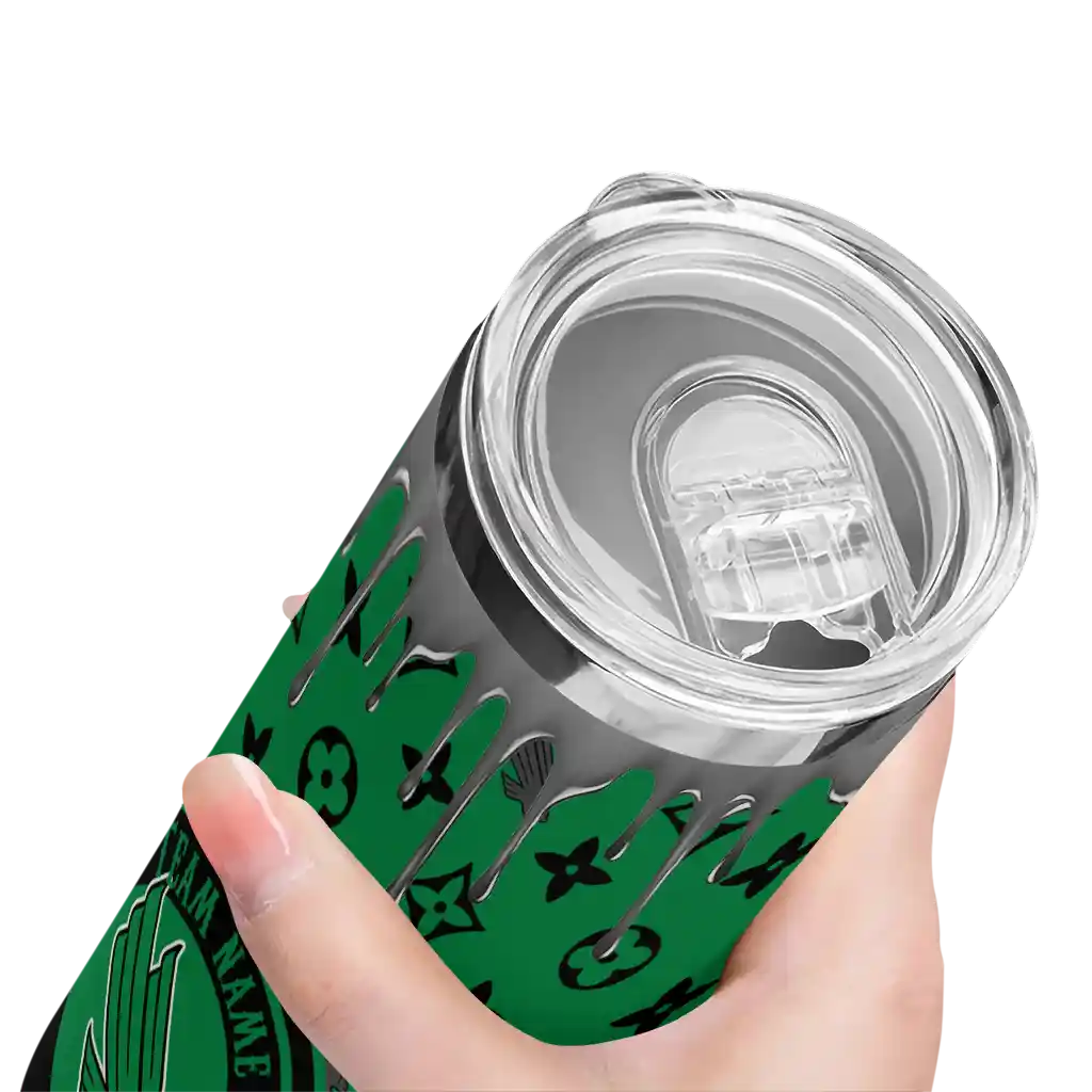 No question about it—the Customized North Texas Mean Green Claw Cut Green Black Curved Tumbler is the ultimate way to stay refreshed while rocking your North Texas Mean Green pride. From the stadium to your tailgate, or just chilling at home, this sleek tumbler makes sure you stay hydrated in style. What’s in the box? A stainless steel tumbler, clear lid, and removable straw—all the essentials for keeping your favorite drinks on point!