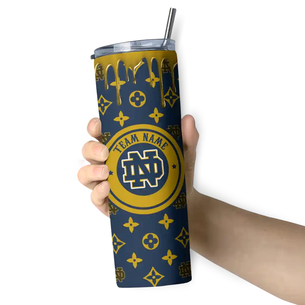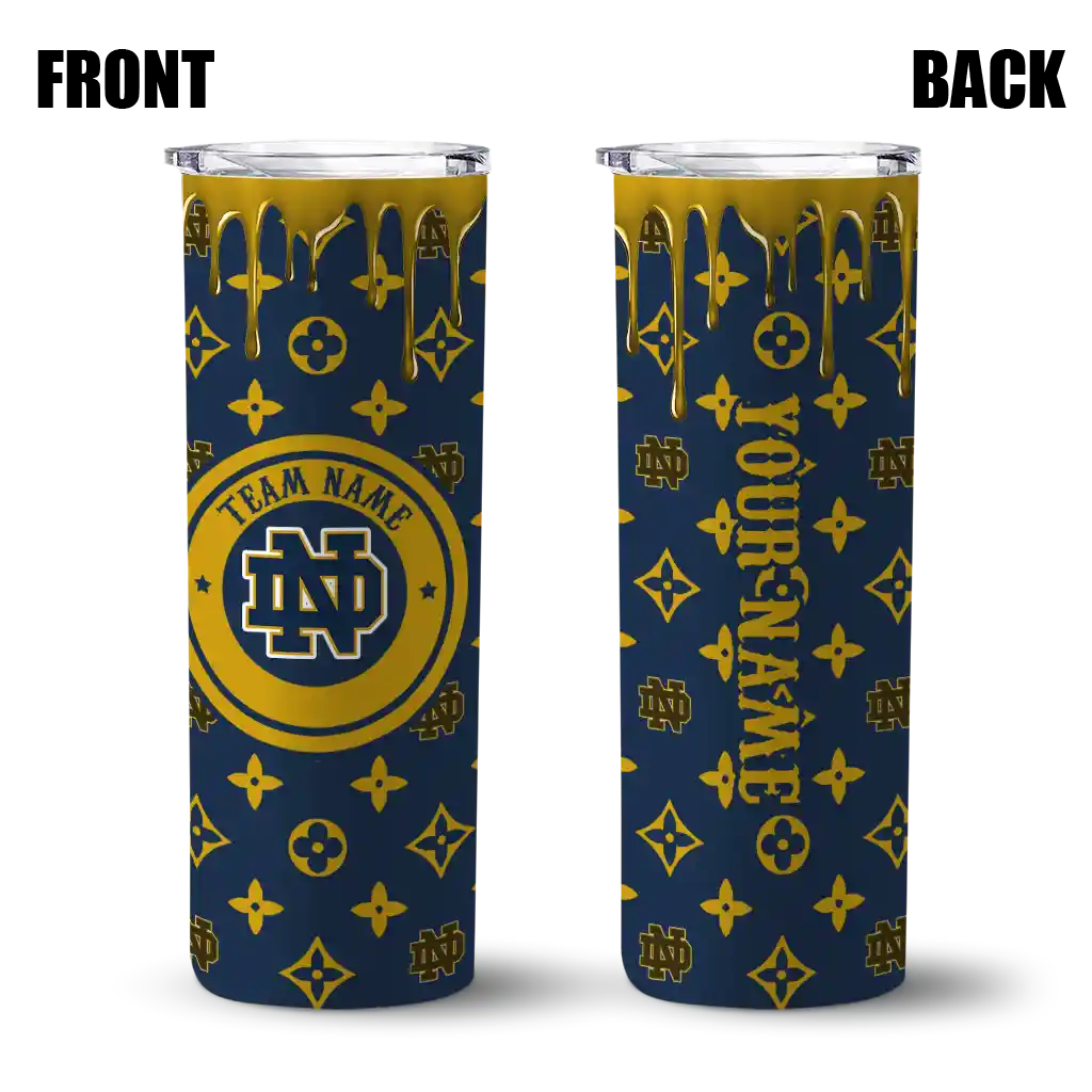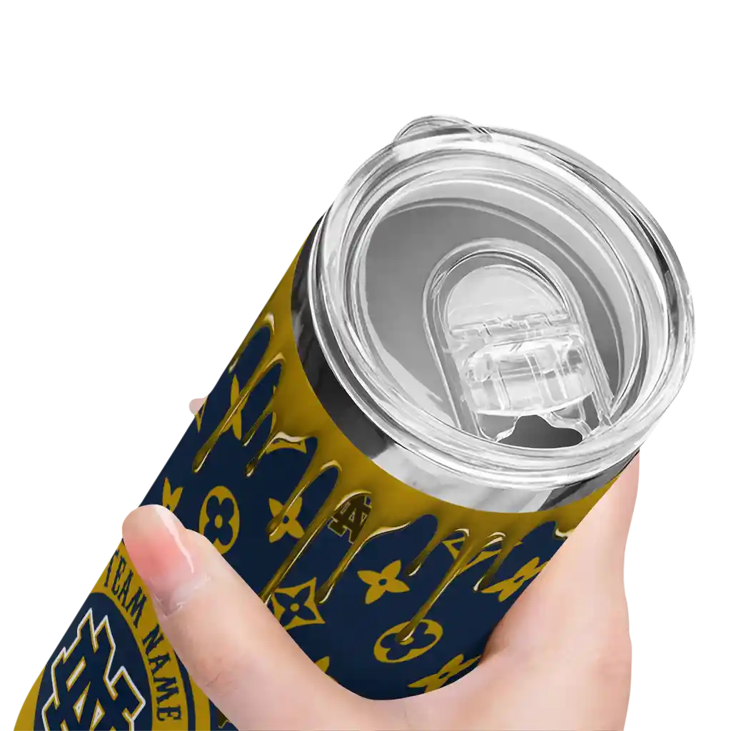 The Customized Notre Dame Fighting Irish Camo Streak Navy Skinny Tumbler tumbler is the perfect way to stay refreshed while showing off your pride for Notre Dame Fighting Irish. With its double-wall insulation, your drinks stay at the right temperature for hours, whether you're enjoying a hot coffee or keeping your iced drink cold. What's inside? You’ll find 1 stainless steel tumbler, 1 clear lid, and 1 removable straw. It's the perfect blend of function and fan spirit! Ergonomically designed for comfort, made from durable stainless steel, and insulated to maintain your drink’s temperature, this tumbler is a must-have for any dedicated NCAA fan.