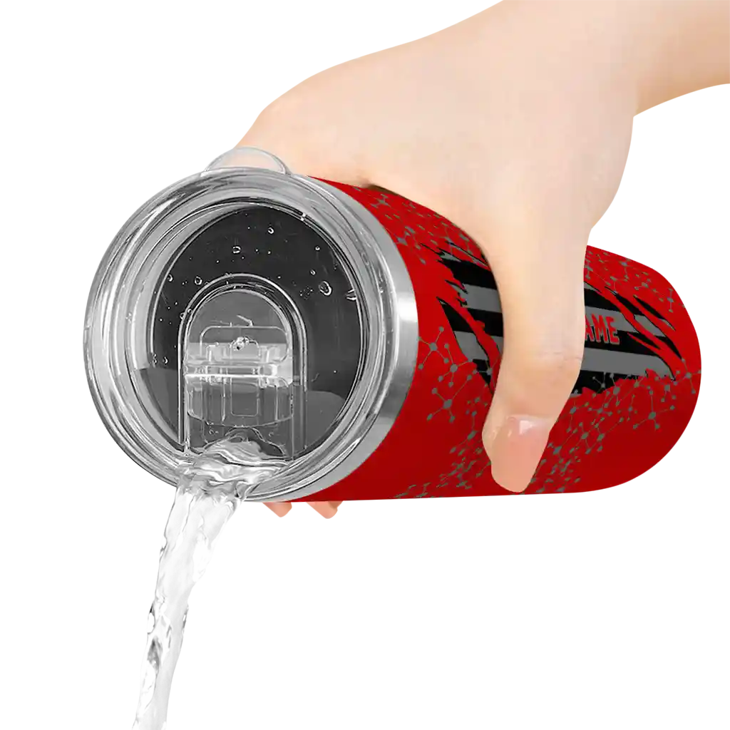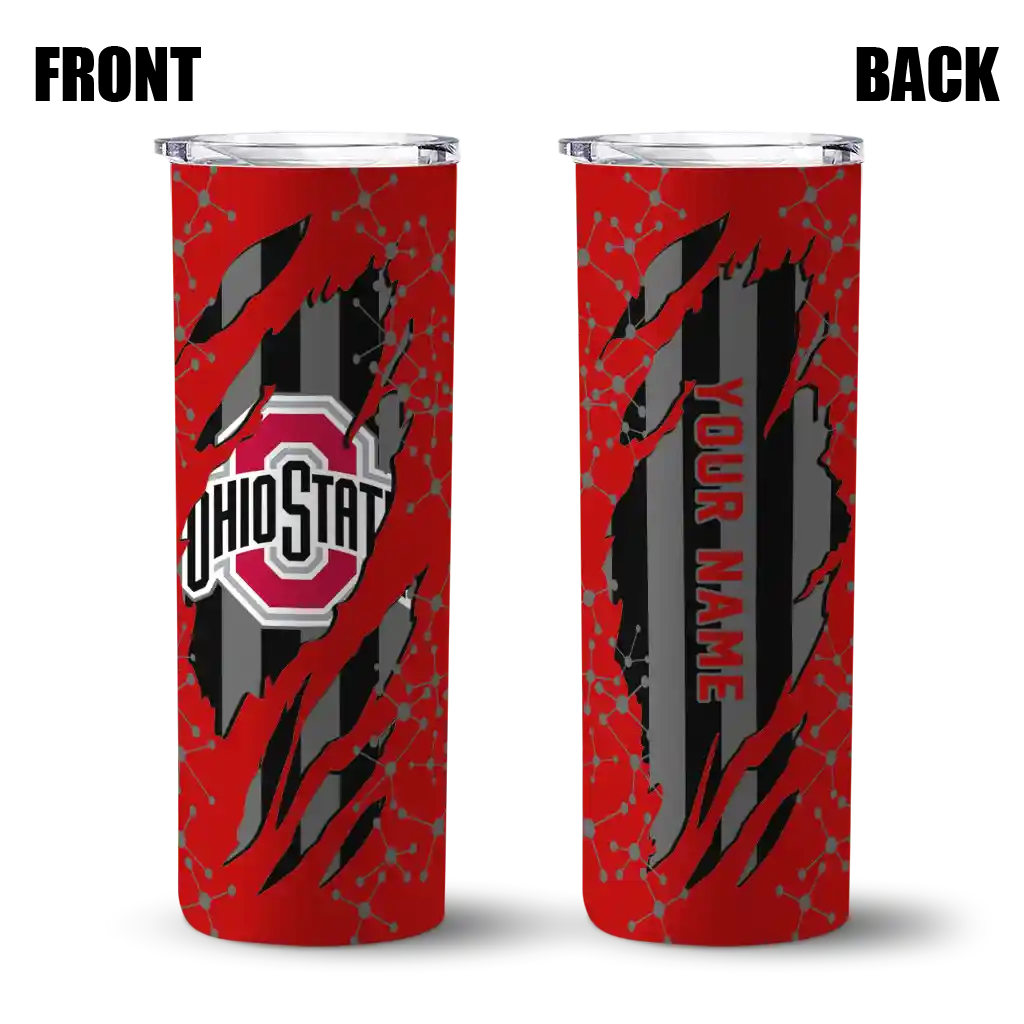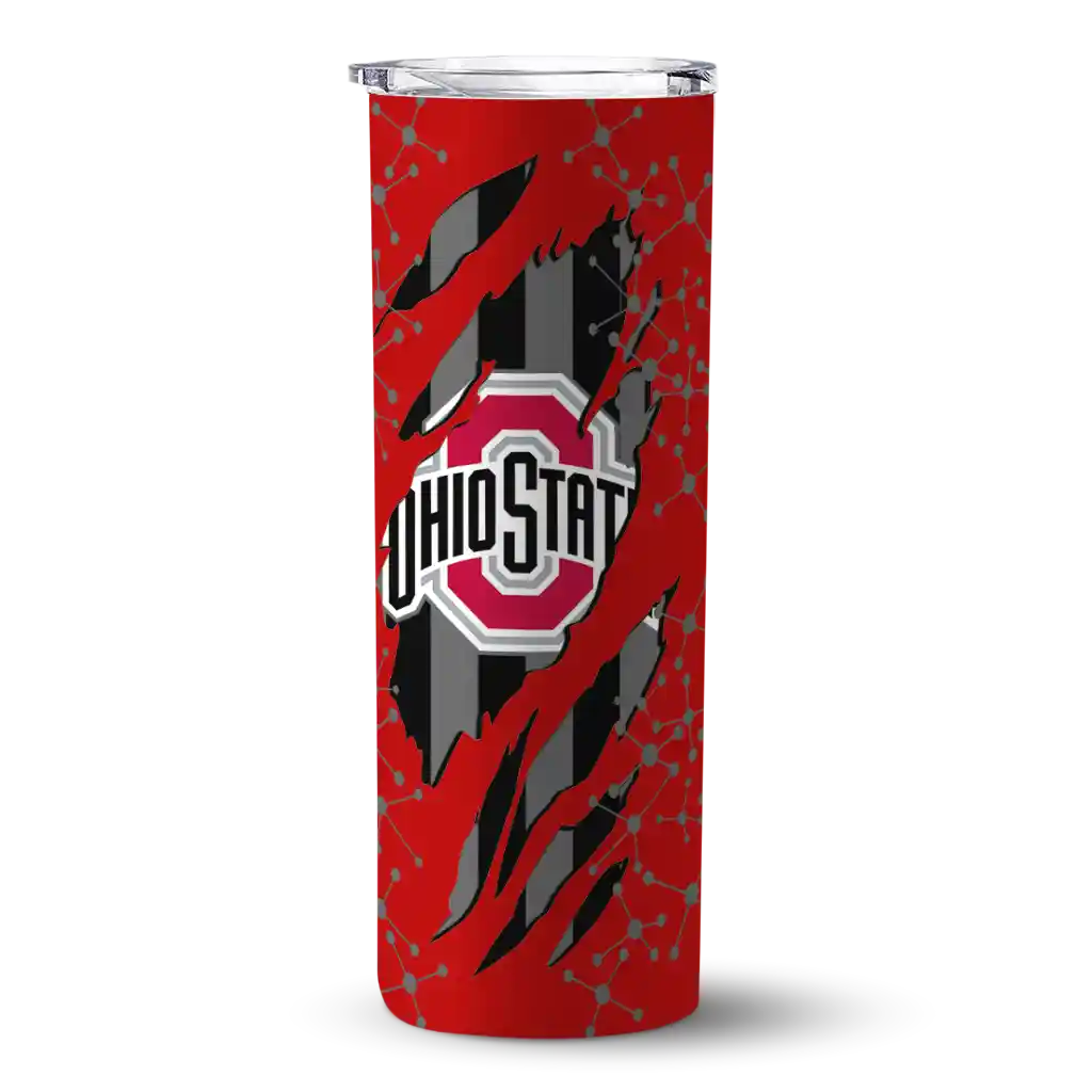 The Custom Ohio State Buckeyes Camo Streak Scarlet Skinny Tumbler tumbler is the perfect way to stay refreshed while showing off your pride for Ohio State Buckeyes. With its double-wall insulation, your drinks stay at the right temperature for hours, whether you're enjoying a hot coffee or keeping your iced drink cold. What's inside? You’ll find 1 stainless steel tumbler, 1 clear lid, and 1 removable straw. It's the perfect blend of function and fan spirit! Ergonomically designed for comfort, made from durable stainless steel, and insulated to maintain your drink’s temperature, this tumbler is a must-have for any dedicated NCAA fan.