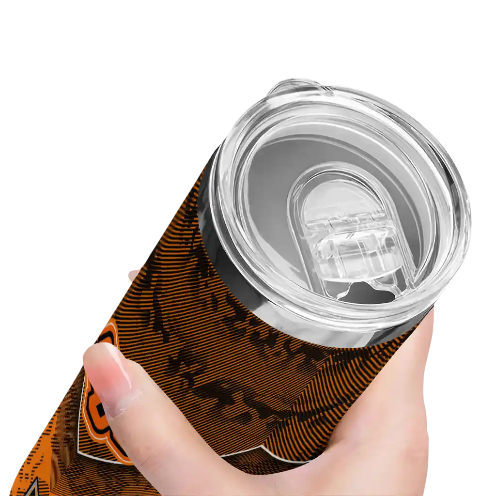Customized Oklahoma State Cowboys Spiral Burst Print Orange Skinny Tumbler