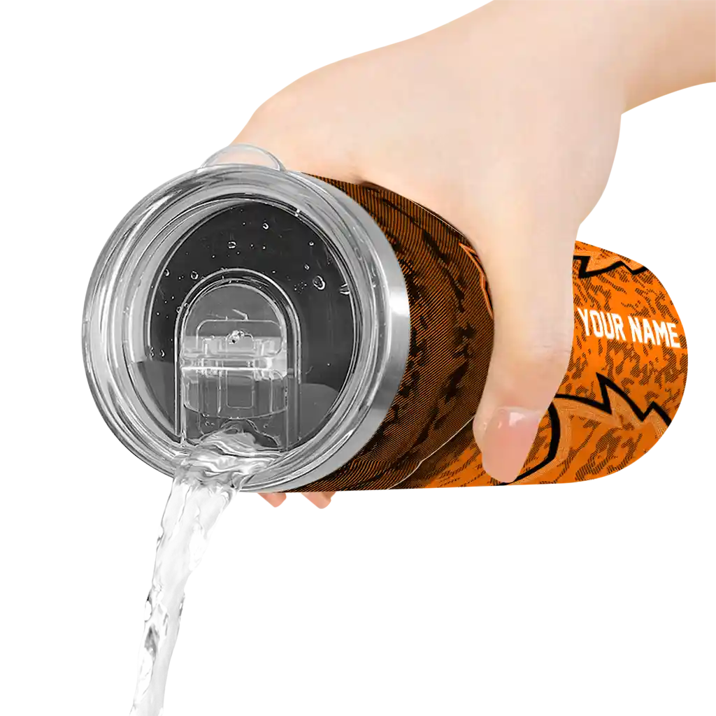The Personalized Oklahoma State Cowboys Helmet Clash Orange Skinny Tumbler tumbler is the perfect way to stay refreshed while showing off your pride for Oklahoma State Cowboys. With its double-wall insulation, your drinks stay at the right temperature for hours, whether you're enjoying a hot coffee or keeping your iced drink cold. What's inside? You’ll find 1 stainless steel tumbler, 1 clear lid, and 1 removable straw. It's the perfect blend of function and fan spirit! Ergonomically designed for comfort, made from durable stainless steel, and insulated to maintain your drink’s temperature, this tumbler is a must-have for any dedicated NCAA fan.