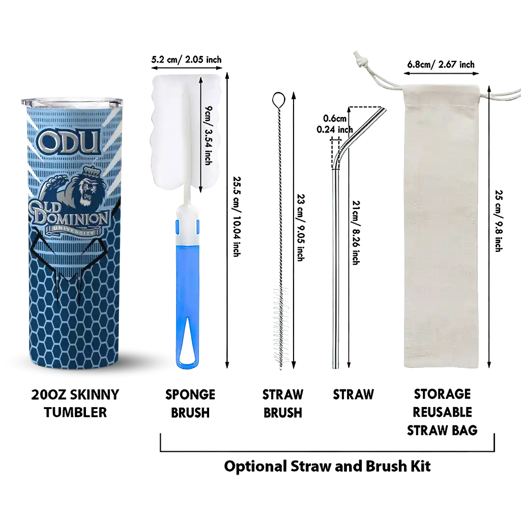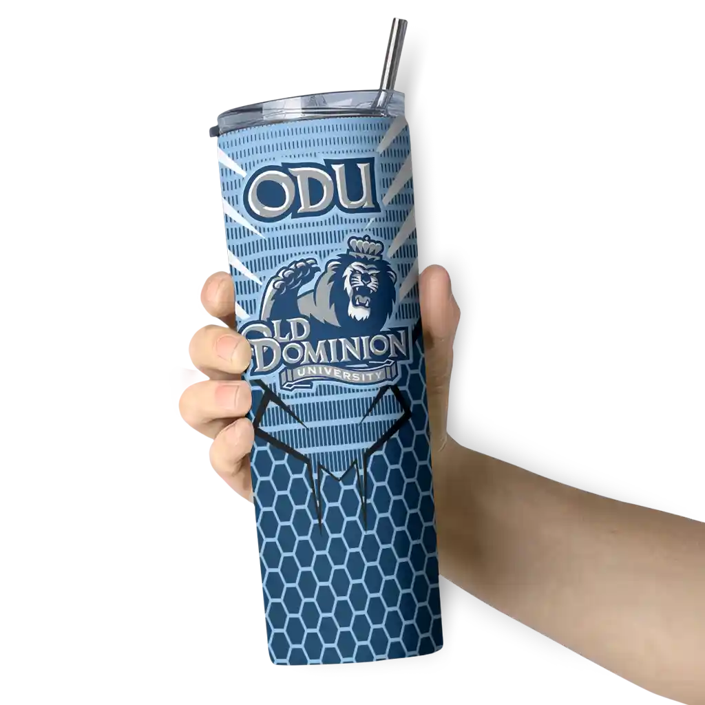 The Customized Old Dominion Monarchs Chevron Stripes Blue Skinny Tumbler tumbler is the perfect way to stay refreshed while showing off your pride for Old Dominion Monarchs. With its double-wall insulation, your drinks stay at the right temperature for hours, whether you're enjoying a hot coffee or keeping your iced drink cold. What's inside? You’ll find 1 stainless steel tumbler, 1 clear lid, and 1 removable straw. It's the perfect blend of function and fan spirit! Ergonomically designed for comfort, made from durable stainless steel, and insulated to maintain your drink’s temperature, this tumbler is a must-have for any dedicated NCAA fan.