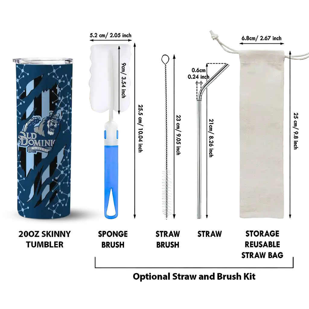 The Customized Old Dominion Monarchs Chevron Stripes Blue Skinny Tumbler tumbler is the perfect way to stay refreshed while showing off your pride for Old Dominion Monarchs. With its double-wall insulation, your drinks stay at the right temperature for hours, whether you're enjoying a hot coffee or keeping your iced drink cold. What's inside? You’ll find 1 stainless steel tumbler, 1 clear lid, and 1 removable straw. It's the perfect blend of function and fan spirit! Ergonomically designed for comfort, made from durable stainless steel, and insulated to maintain your drink’s temperature, this tumbler is a must-have for any dedicated NCAA fan.