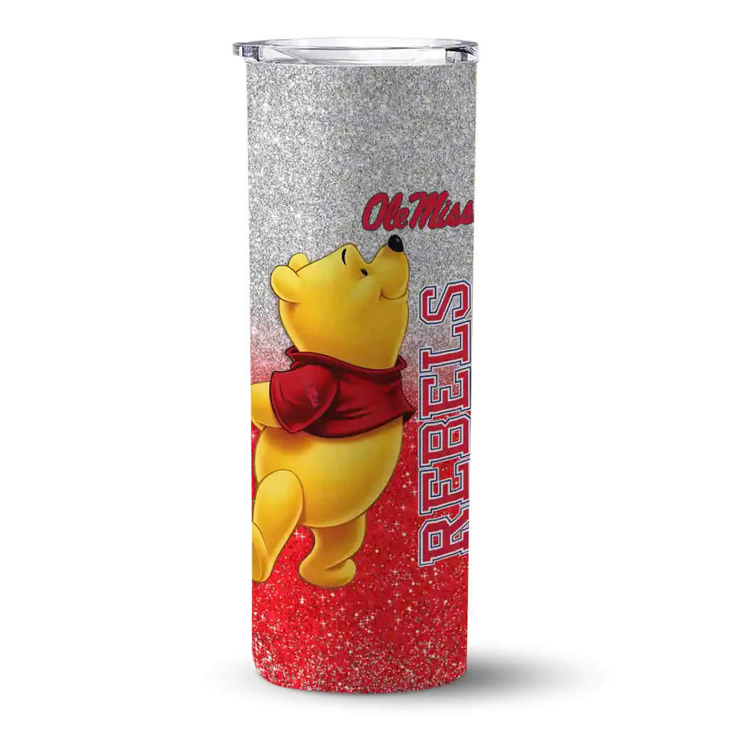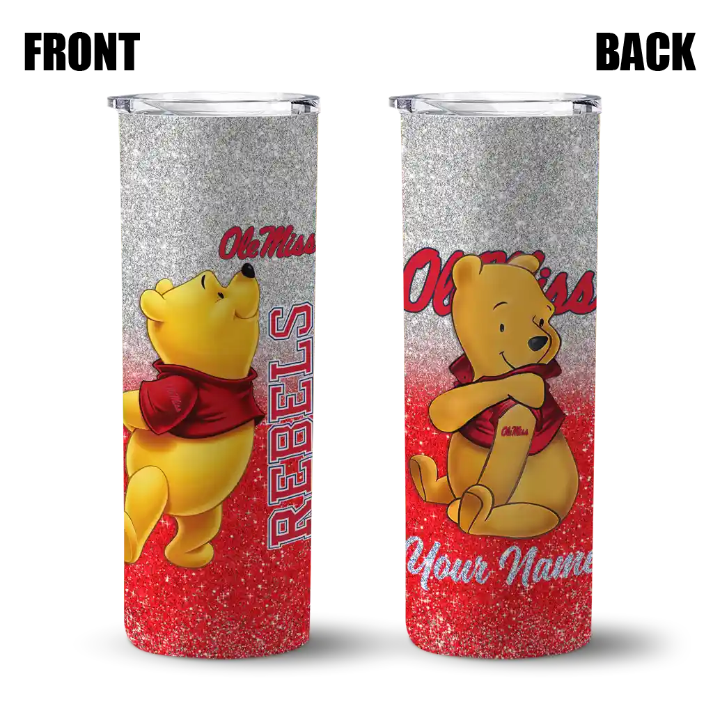 Customized Ole Miss Rebels Winnie the Pooh Red Gray Skinny Tumbler