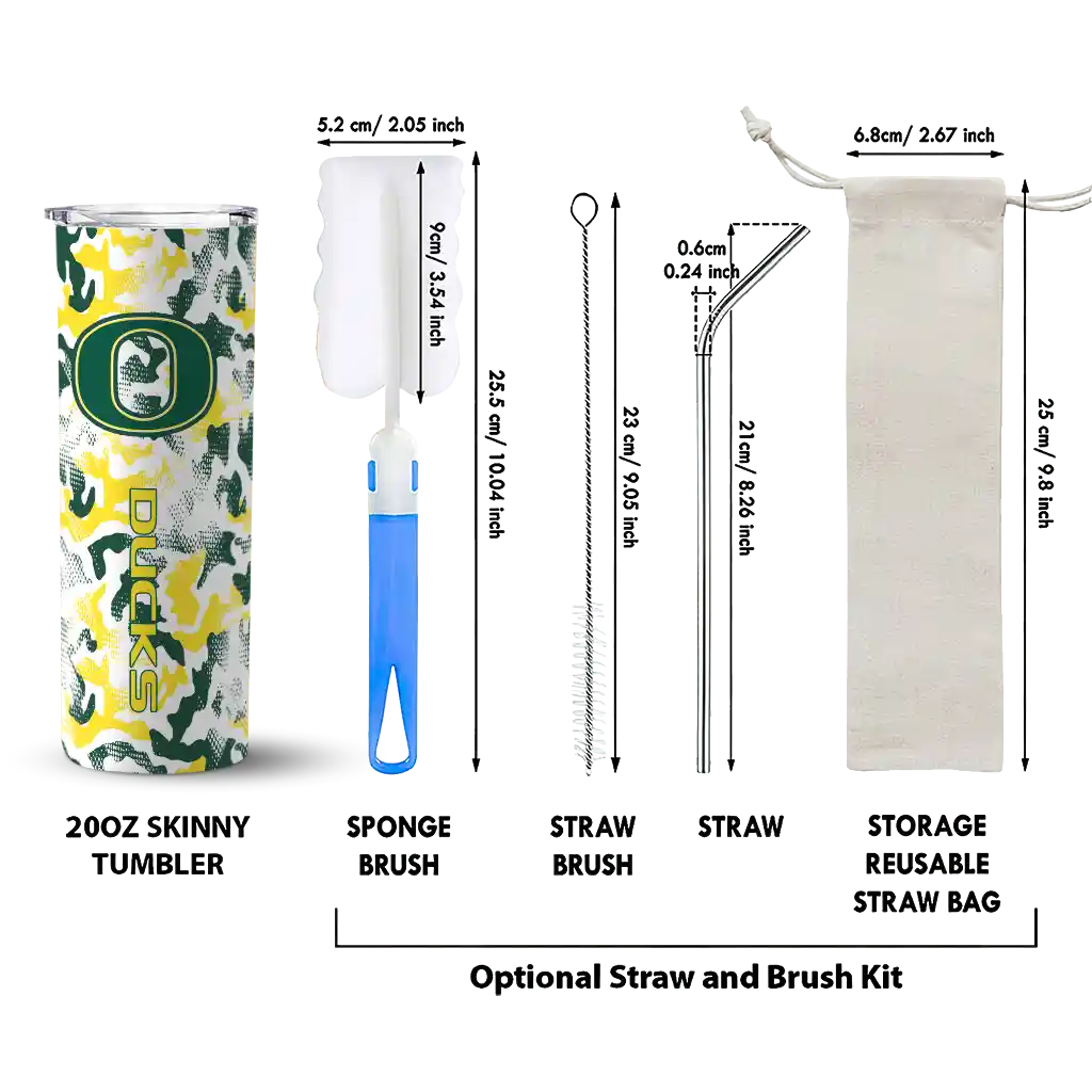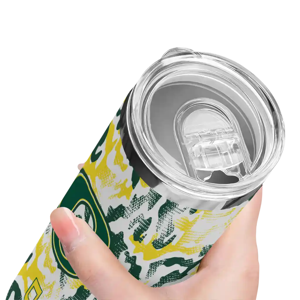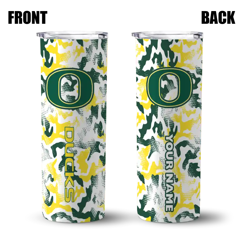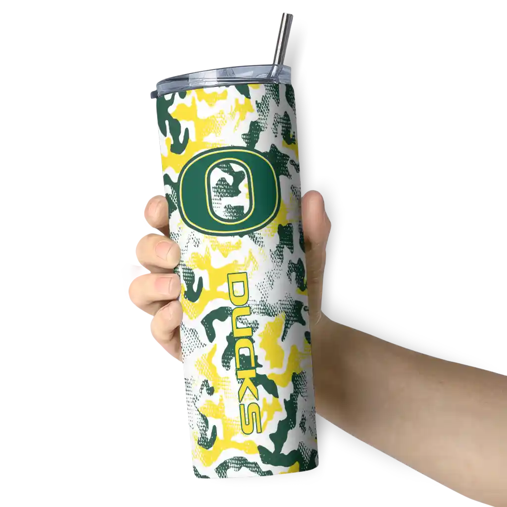 No question about it—the Customized Oregon Ducks Camo Mashup Green White Curved Tumbler is the ultimate way to stay refreshed while rocking your Oregon Ducks pride. From the stadium to your tailgate, or just chilling at home, this sleek tumbler makes sure you stay hydrated in style. What’s in the box? A stainless steel tumbler, clear lid, and removable straw—all the essentials for keeping your favorite drinks on point!
