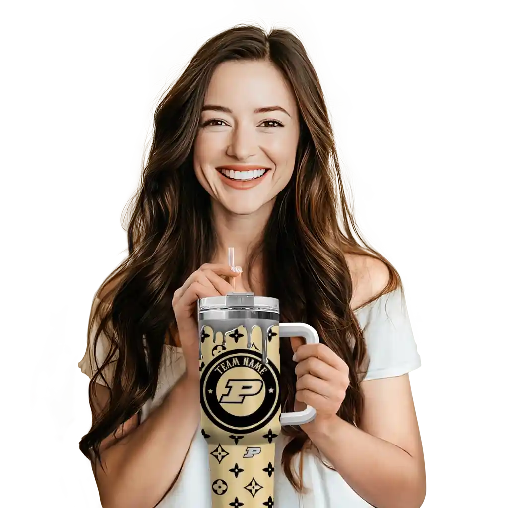 No question about it—the Customized Purdue Boilermakers Bullseye Drips Gold Curved Tumbler is the ultimate way to stay refreshed while rocking your Purdue Boilermakers pride. From the stadium to your tailgate, or just chilling at home, this sleek tumbler makes sure you stay hydrated in style. What’s in the box? A stainless steel tumbler, clear lid, and removable straw—all the essentials for keeping your favorite drinks on point!