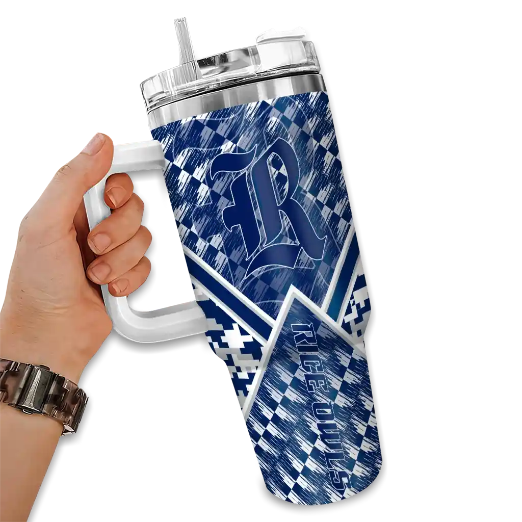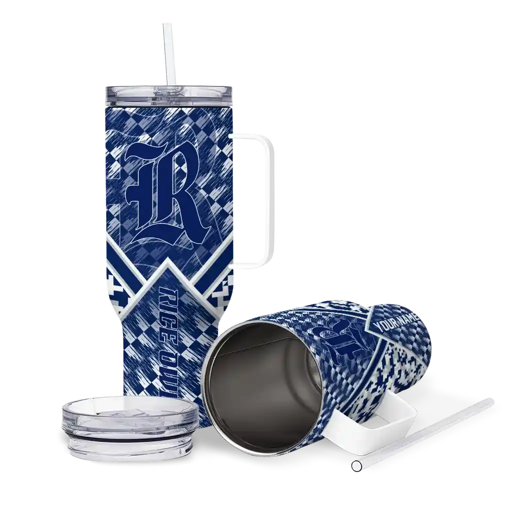 No question about it—the Customized Rice Owls Chevron Angle Navy Blue Curved Tumbler is the ultimate way to stay refreshed while rocking your Rice Owls pride. From the stadium to your tailgate, or just chilling at home, this sleek tumbler makes sure you stay hydrated in style. What’s in the box? A stainless steel tumbler, clear lid, and removable straw—all the essentials for keeping your favorite drinks on point!