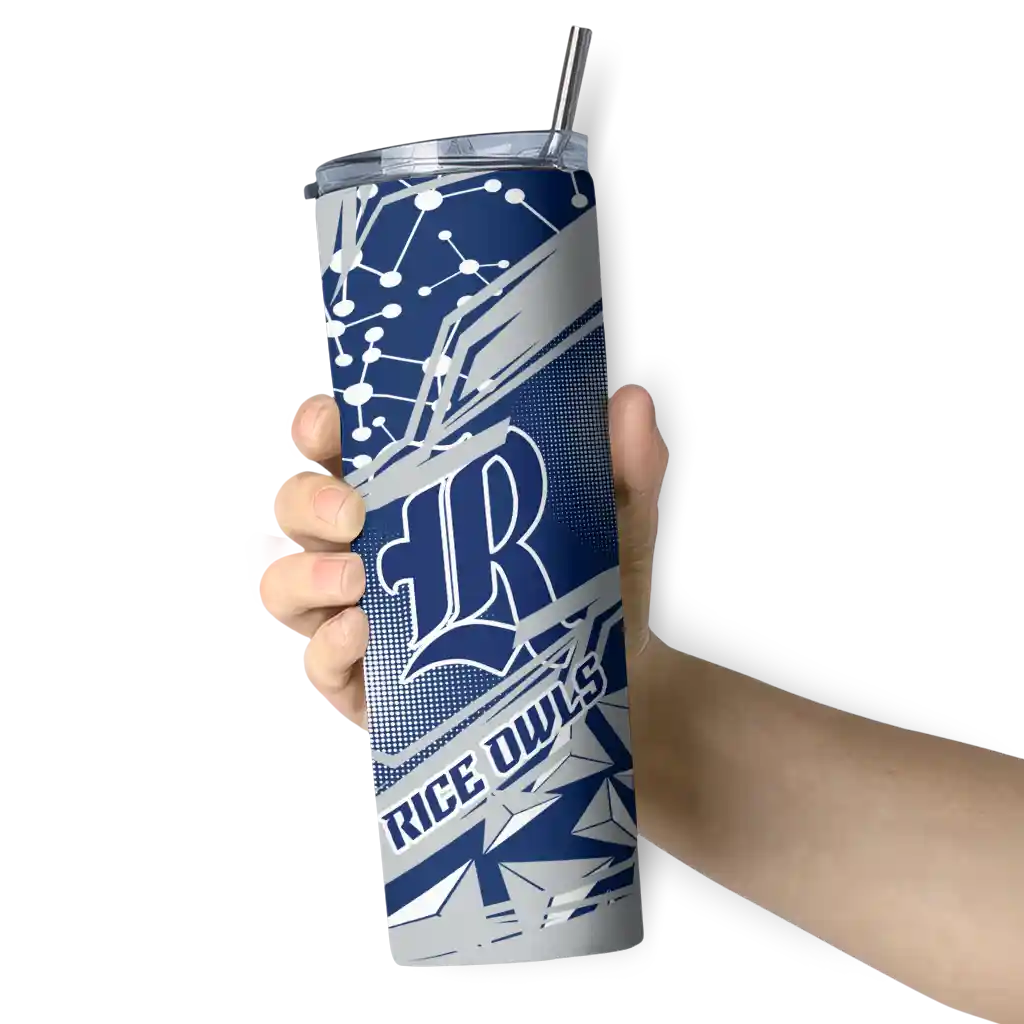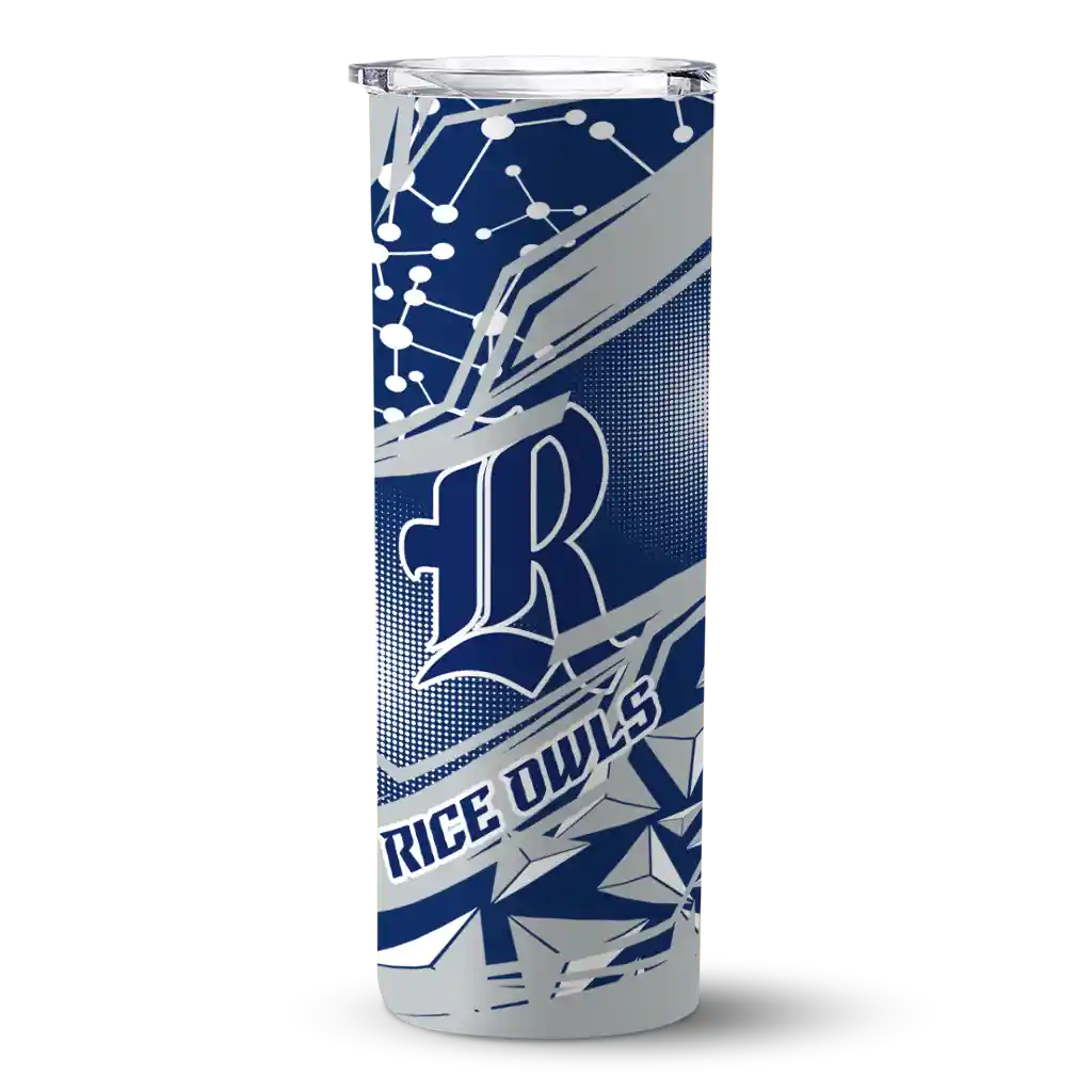 The Customized Rice Owls Helmet Clash Navy Blue Skinny Tumbler tumbler is the perfect way to stay refreshed while showing off your pride for Rice Owls. With its double-wall insulation, your drinks stay at the right temperature for hours, whether you're enjoying a hot coffee or keeping your iced drink cold. What's inside? You’ll find 1 stainless steel tumbler, 1 clear lid, and 1 removable straw. It's the perfect blend of function and fan spirit! Ergonomically designed for comfort, made from durable stainless steel, and insulated to maintain your drink’s temperature, this tumbler is a must-have for any dedicated NCAA fan.