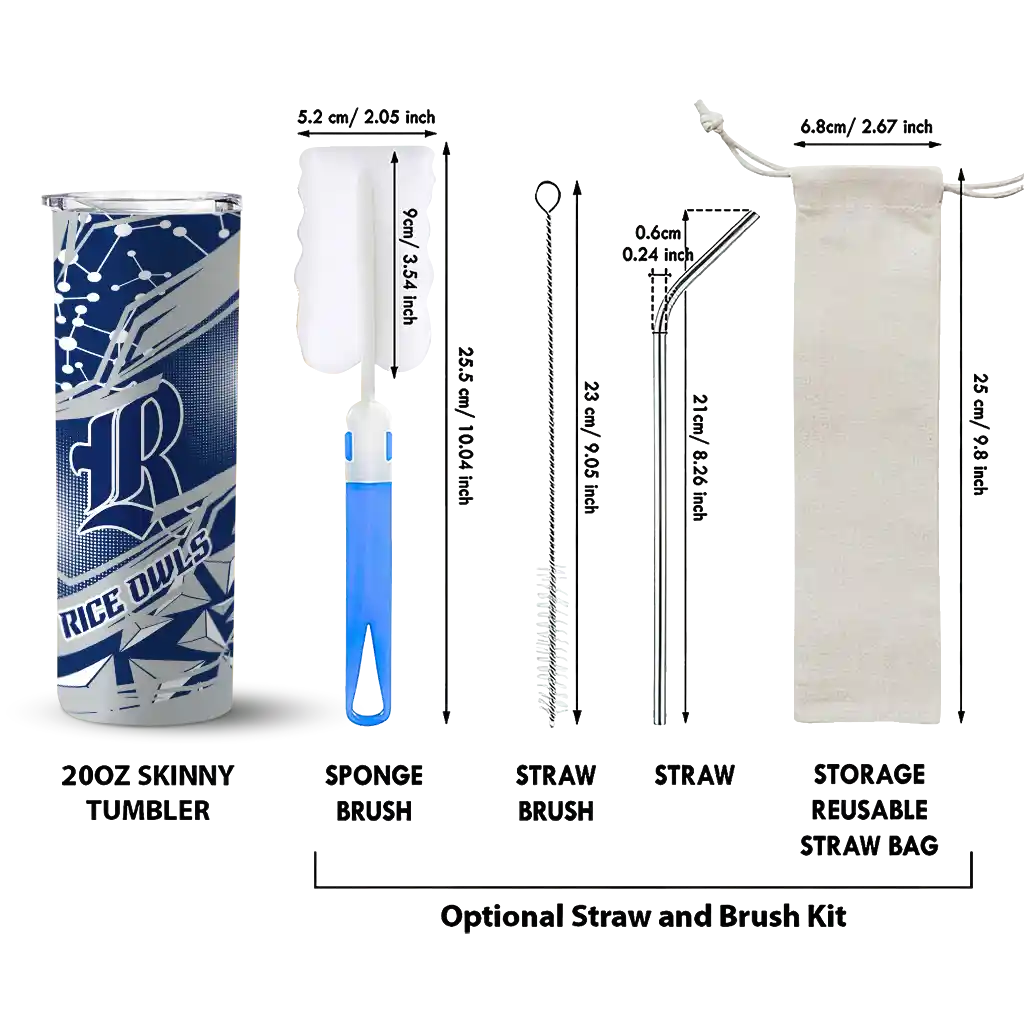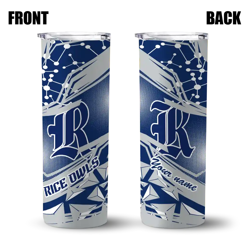 No question about it—the Customized Rice Owls Chevron Angle Navy Blue Curved Tumbler is the ultimate way to stay refreshed while rocking your Rice Owls pride. From the stadium to your tailgate, or just chilling at home, this sleek tumbler makes sure you stay hydrated in style. What’s in the box? A stainless steel tumbler, clear lid, and removable straw—all the essentials for keeping your favorite drinks on point!