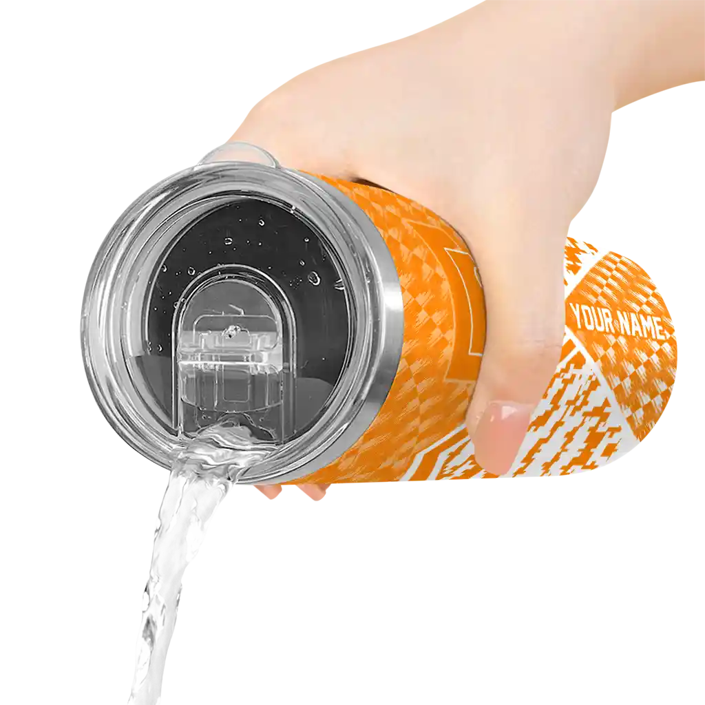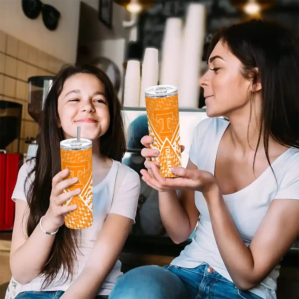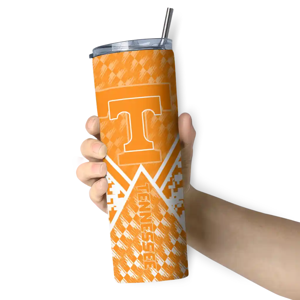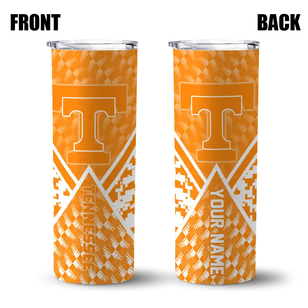 The Customized Tennessee Volunteers Chevron Stripes Orange Skinny Tumbler tumbler is the perfect way to stay refreshed while showing off your pride for Tennessee Volunteers. With its double-wall insulation, your drinks stay at the right temperature for hours, whether you're enjoying a hot coffee or keeping your iced drink cold. What's inside? You’ll find 1 stainless steel tumbler, 1 clear lid, and 1 removable straw. It's the perfect blend of function and fan spirit! Ergonomically designed for comfort, made from durable stainless steel, and insulated to maintain your drink’s temperature, this tumbler is a must-have for any dedicated NCAA fan.