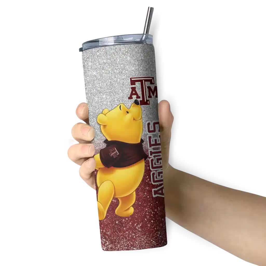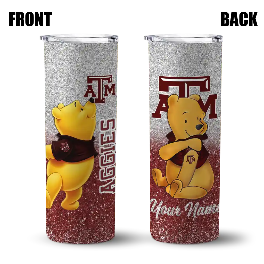 Customized Texas A&M Aggies Winnie the Pooh Maroon Gray Skinny Tumbler