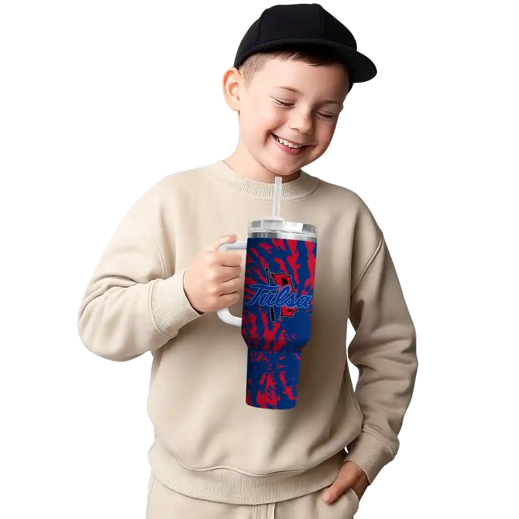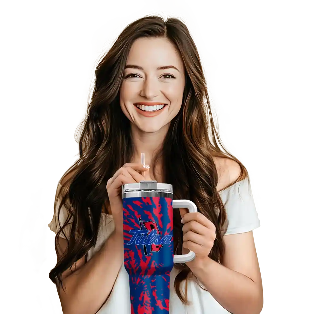 Tulsa Golden Hurricane Curved Tumbler – Customized Burst Swirl Blue