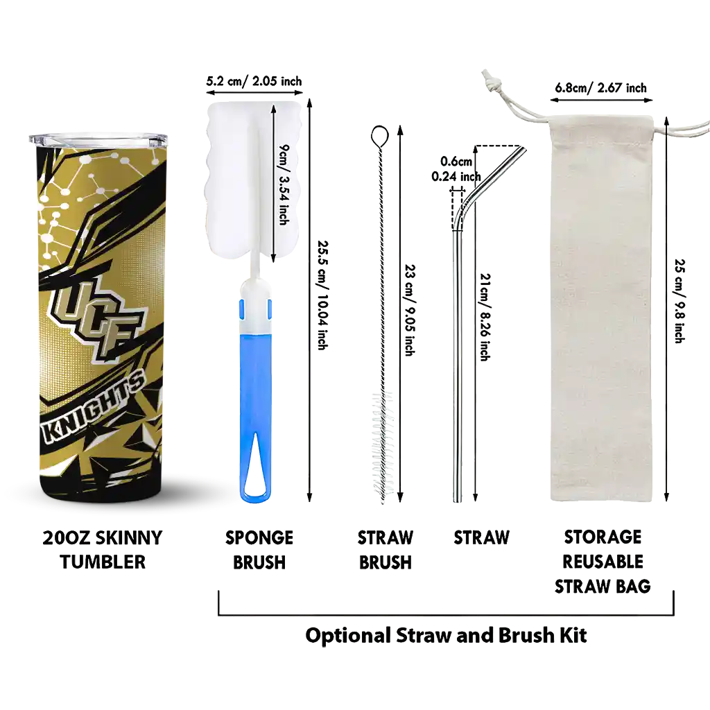 The Customized UCF Knights Helmet Clash Gold Skinny Tumbler tumbler is the perfect way to stay refreshed while showing off your pride for UCF Knights. With its double-wall insulation, your drinks stay at the right temperature for hours, whether you're enjoying a hot coffee or keeping your iced drink cold. What's inside? You’ll find 1 stainless steel tumbler, 1 clear lid, and 1 removable straw. It's the perfect blend of function and fan spirit! Ergonomically designed for comfort, made from durable stainless steel, and insulated to maintain your drink’s temperature, this tumbler is a must-have for any dedicated NCAA fan.